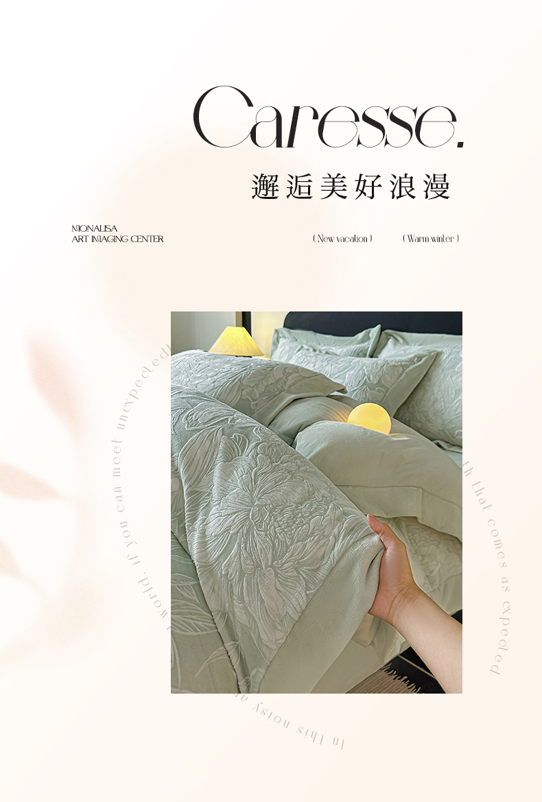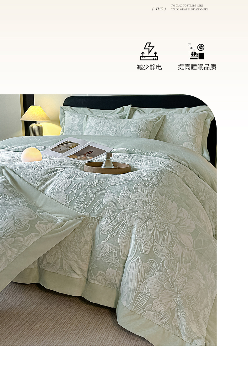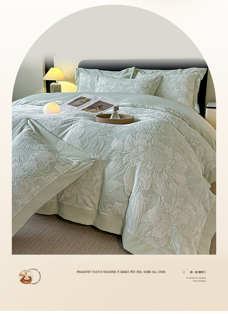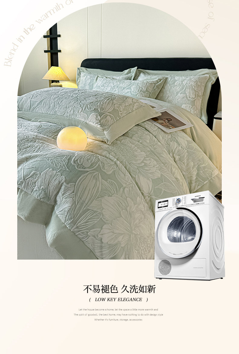 商品名称:锦铭源家纺 2025新款烂花75D全消光超柔樱花绒牛奶绒四件套拼角四件套【有买家秀】 繁花织梦-浅绿