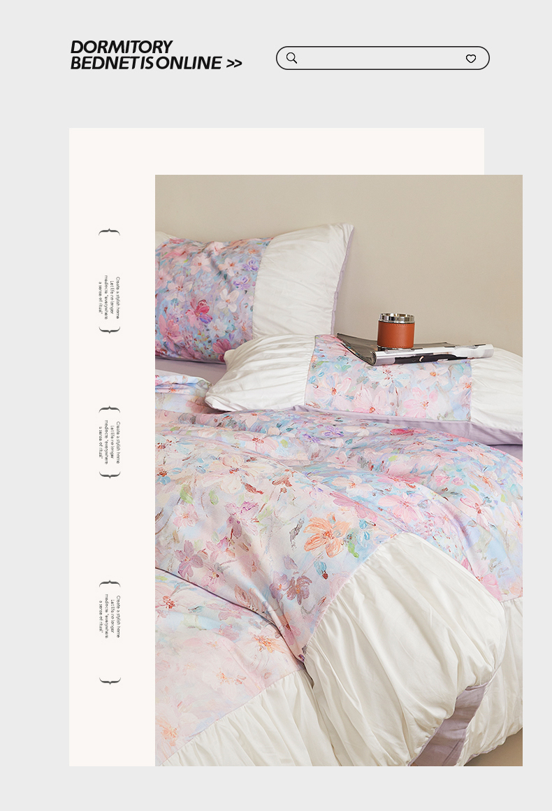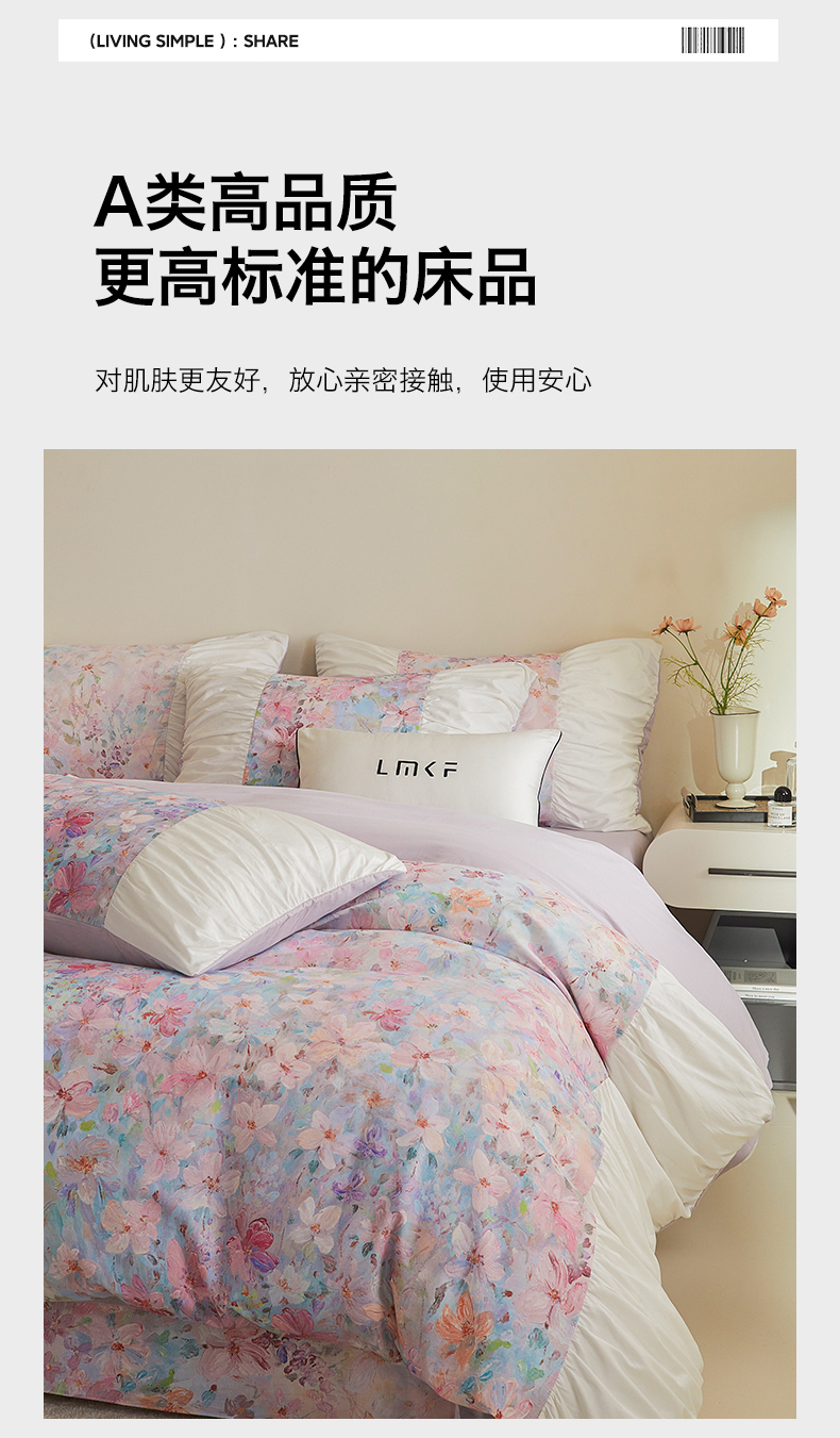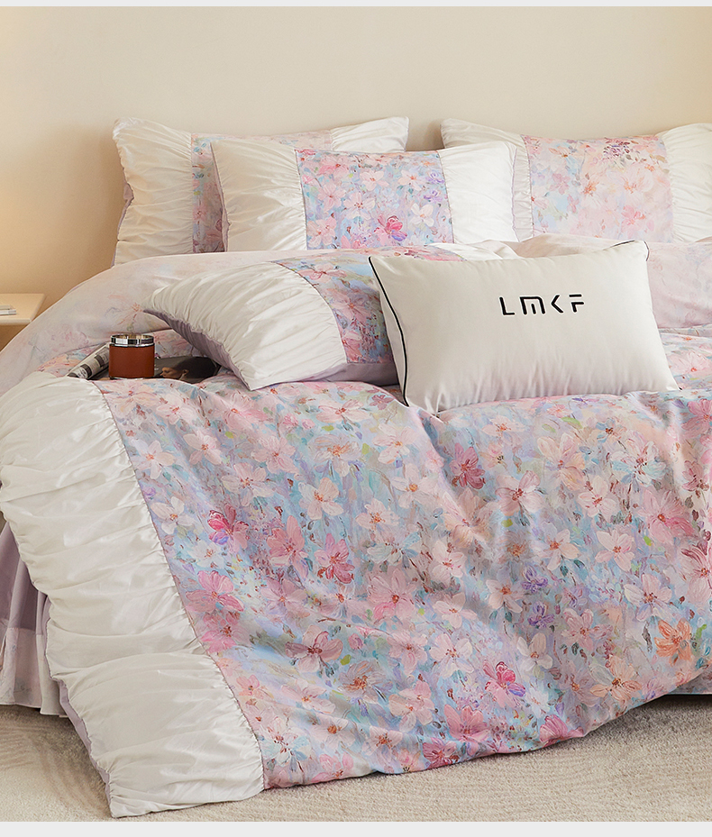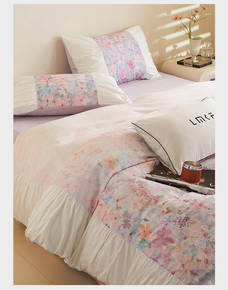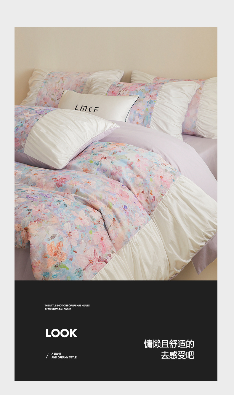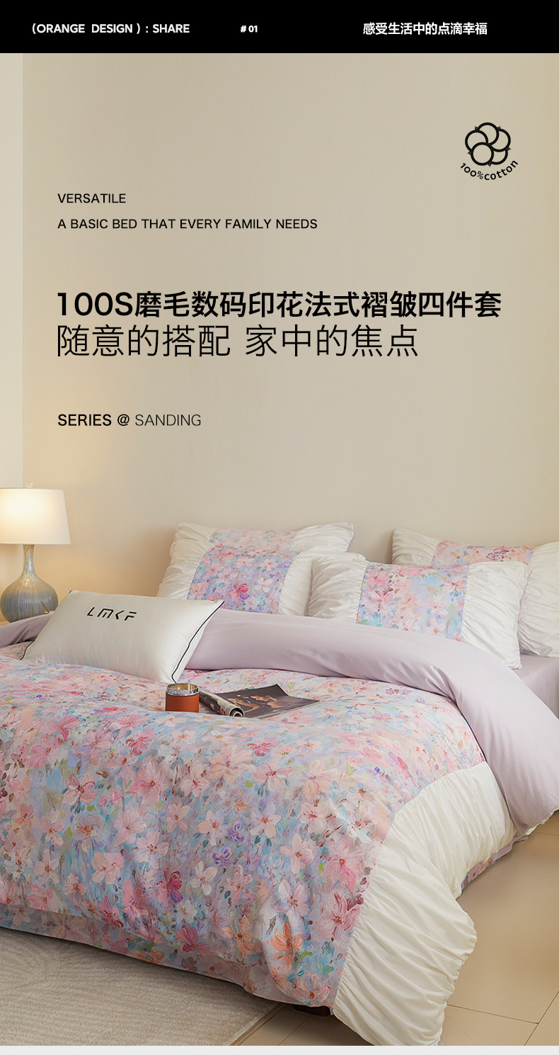 蓝米卡夫 2025秋冬-A类全棉50S*50S双股磨毛数码印花法式褶皱花边款(礼盒包装)-拍摄风格1 笔触与诗-粉