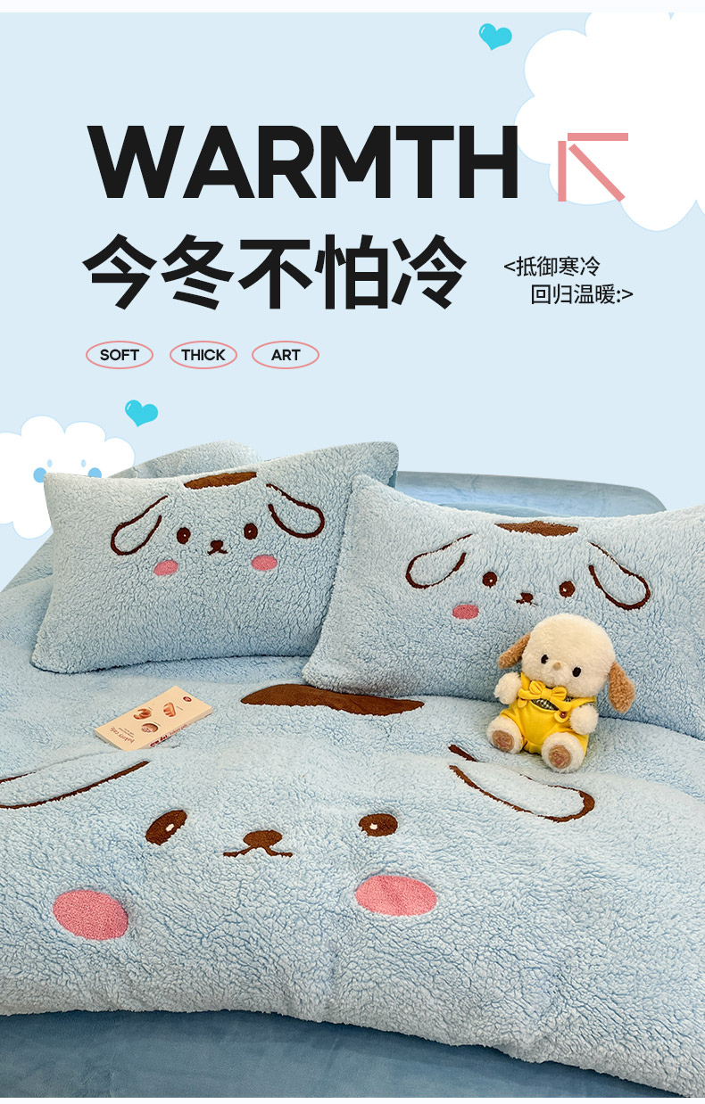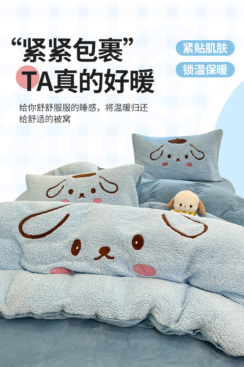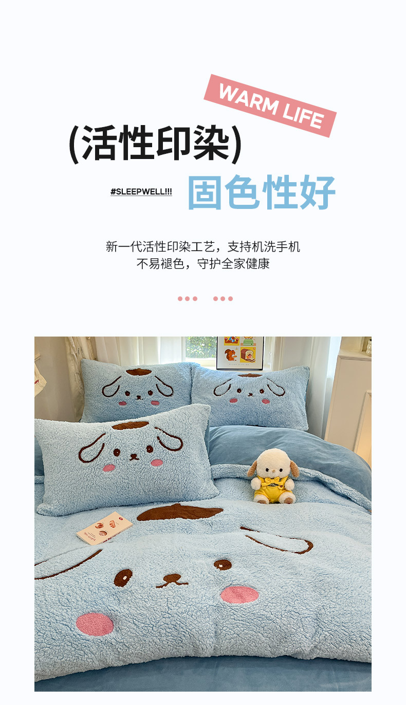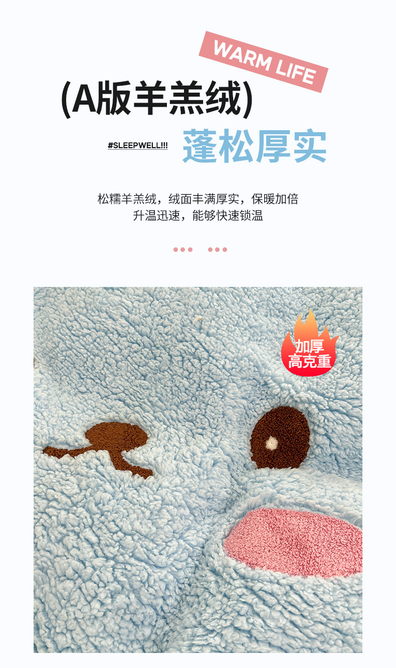 商品名称:乐坊 2025新款大阪羊羔绒牛奶绒卡通四件套冬季加厚保暖 晚安狗-蓝