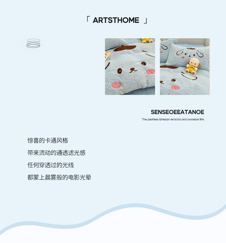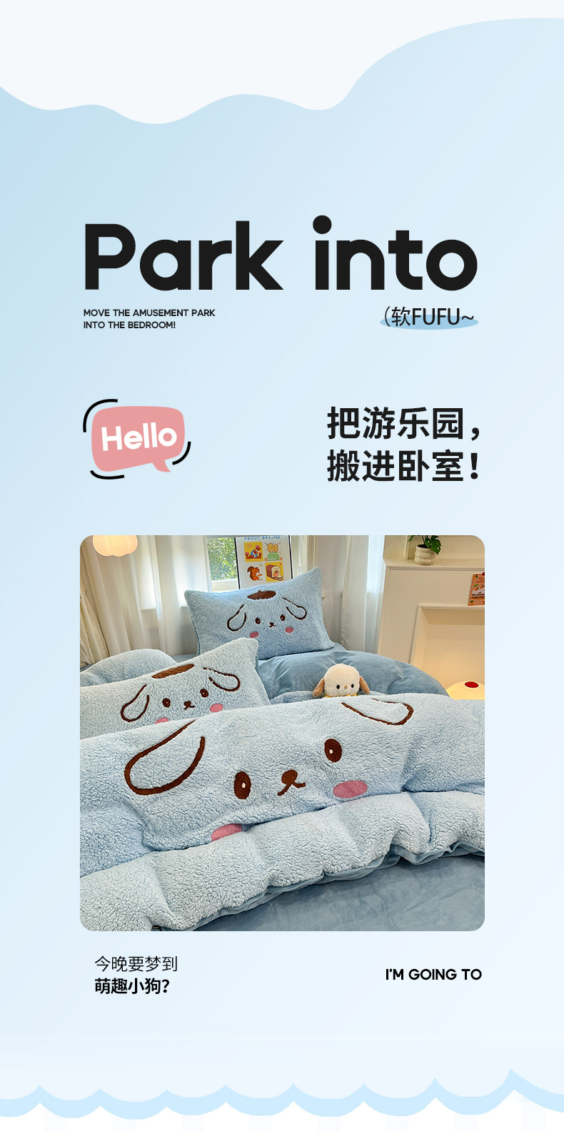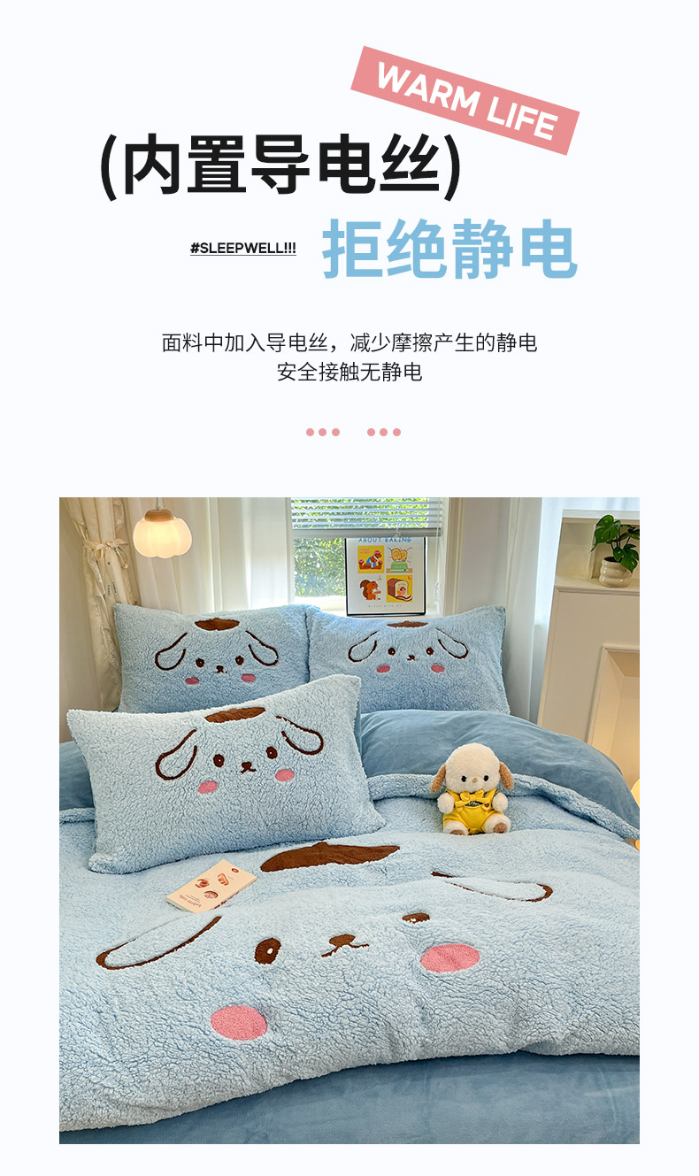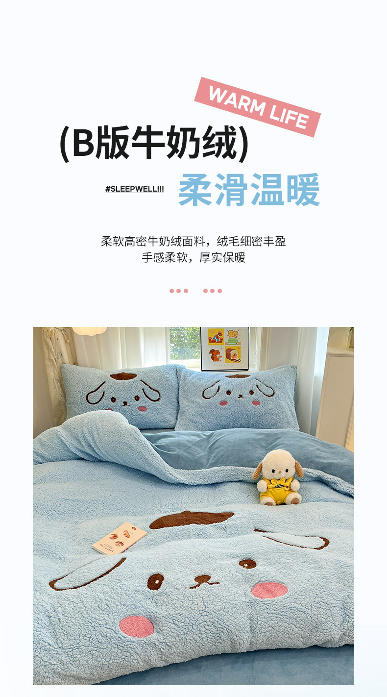 商品名称:乐坊 2025新款大阪羊羔绒牛奶绒卡通四件套冬季加厚保暖 晚安狗-蓝