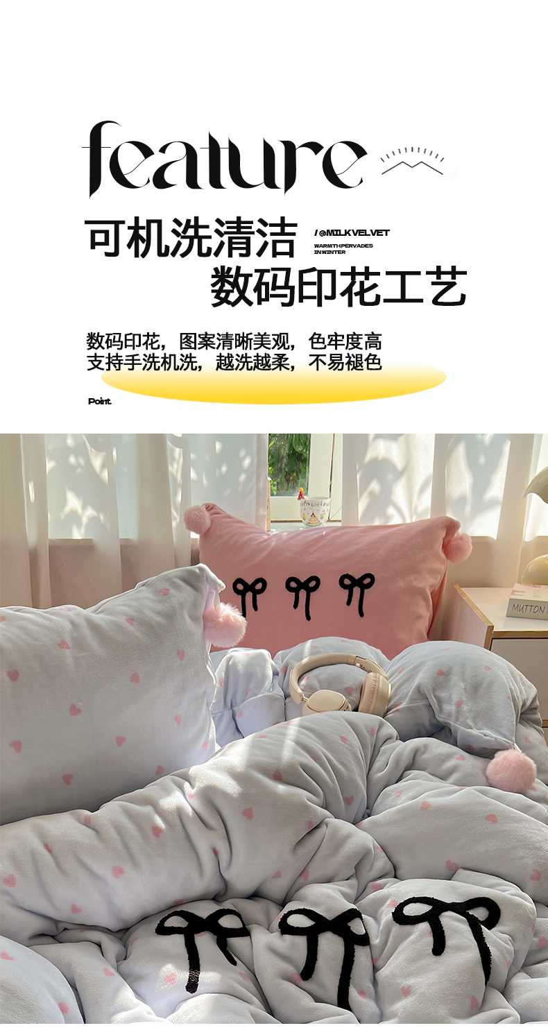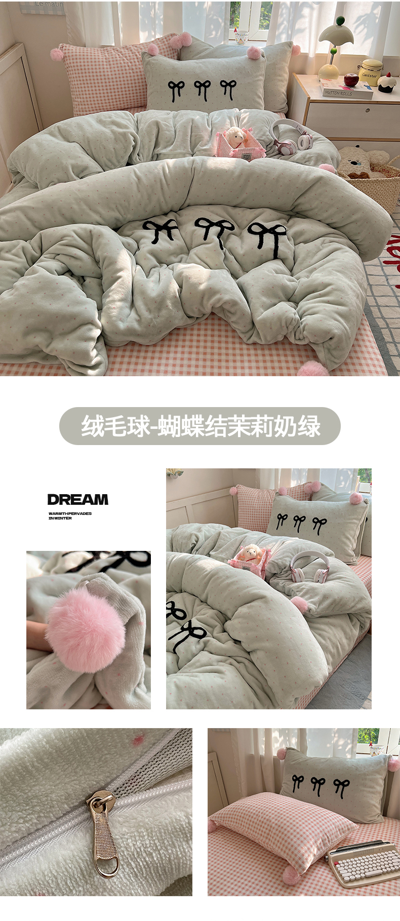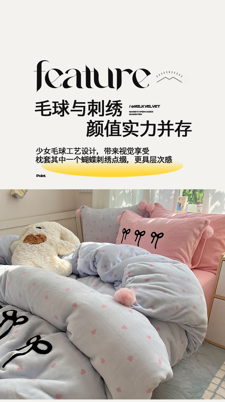 当前位置: 91家纺网 > 商品网购 > 床品套件 > 四件套 > 牛奶绒四件套 > 桃子家居 2025新款insA类少女甜心毛球混搭工艺蝴蝶结刺绣毛巾绣印花加厚牛奶绒四件套 绒毛球-蝴蝶结葡萄草莓