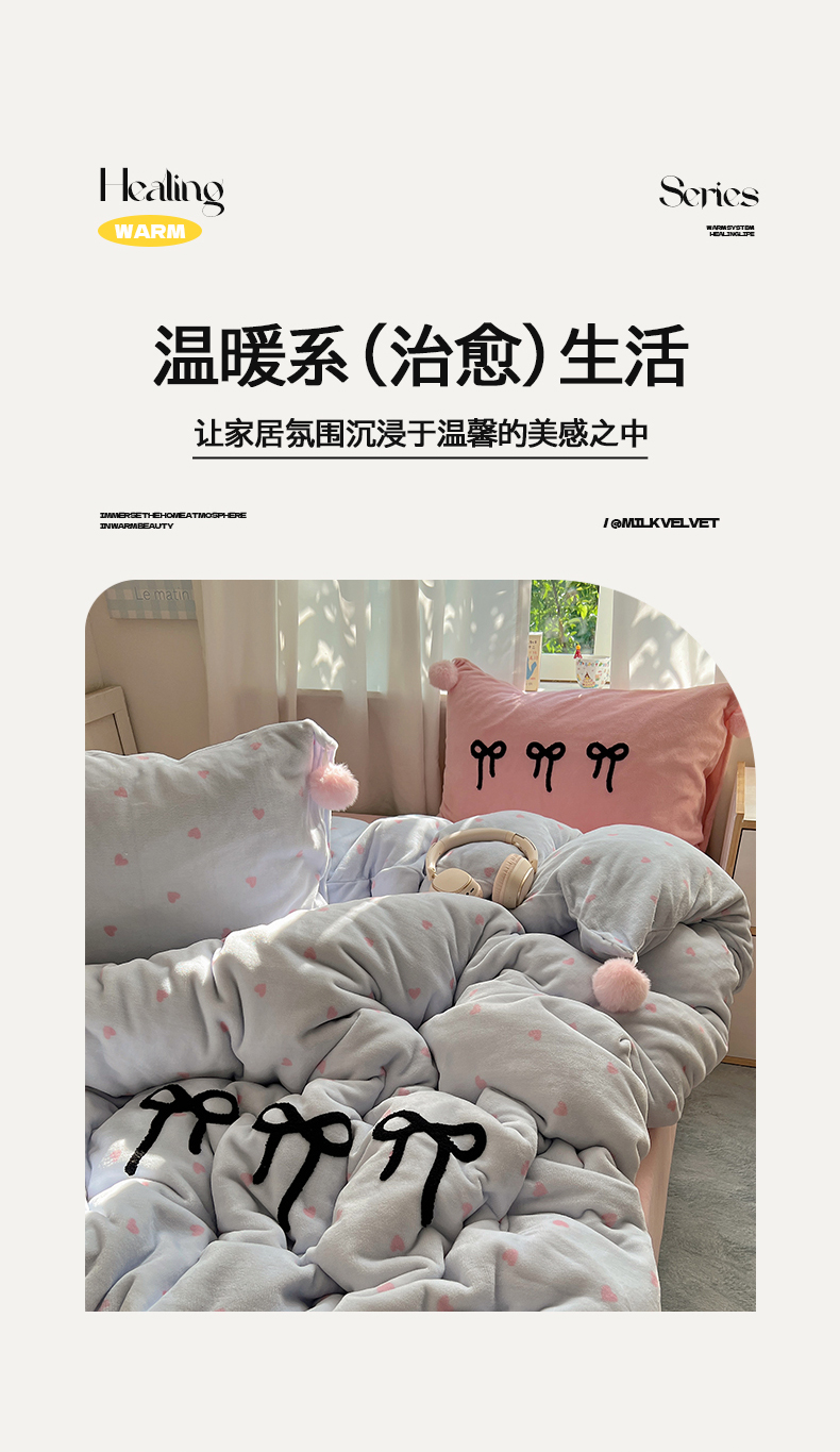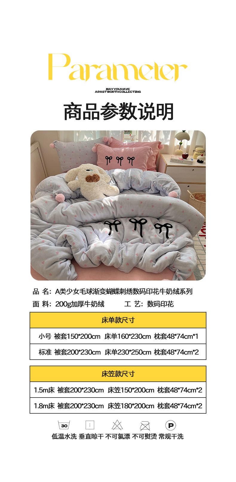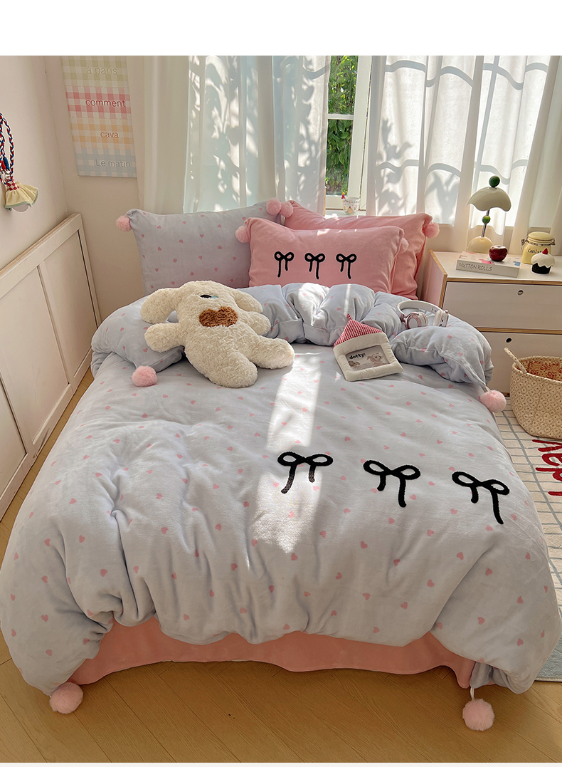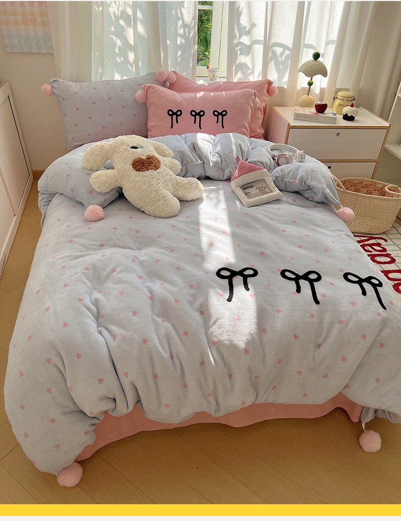 当前位置: 91家纺网 > 商品网购 > 床品套件 > 四件套 > 牛奶绒四件套 > 桃子家居 2025新款insA类少女甜心毛球混搭工艺蝴蝶结刺绣毛巾绣印花加厚牛奶绒四件套 绒毛球-蝴蝶结葡萄草莓