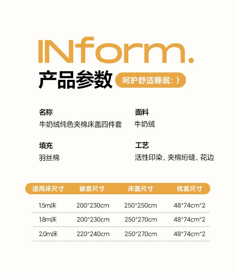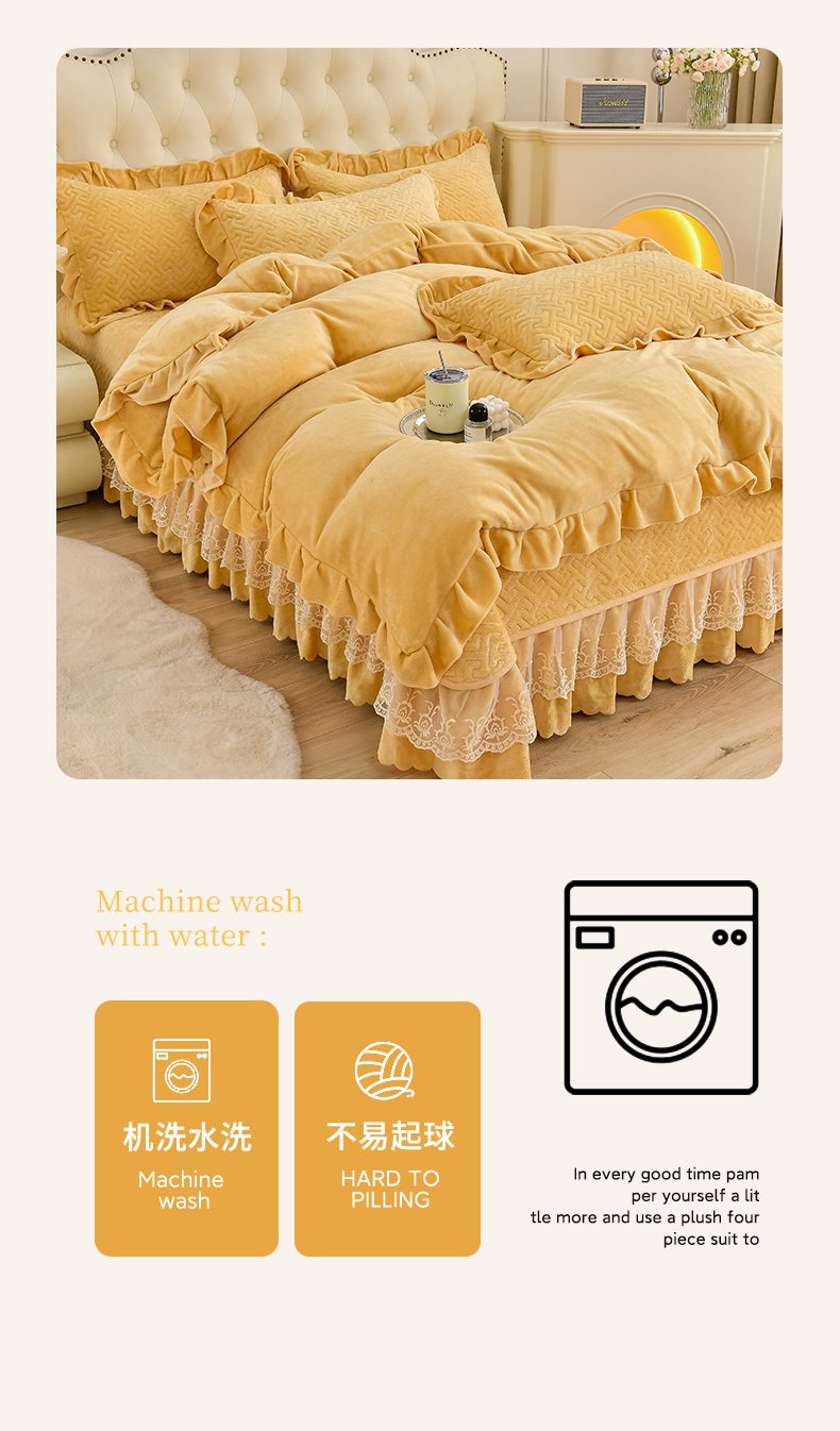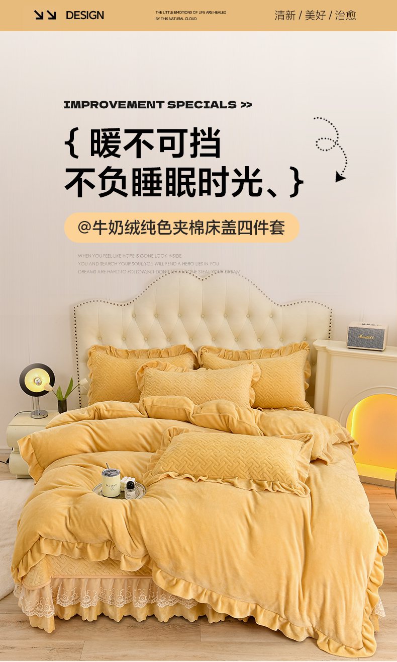 商品名称:畅畅家纺 2025新款11斤秋冬加厚纯色韩版牛奶绒夹棉床盖四件套-倾城 倾城-黄