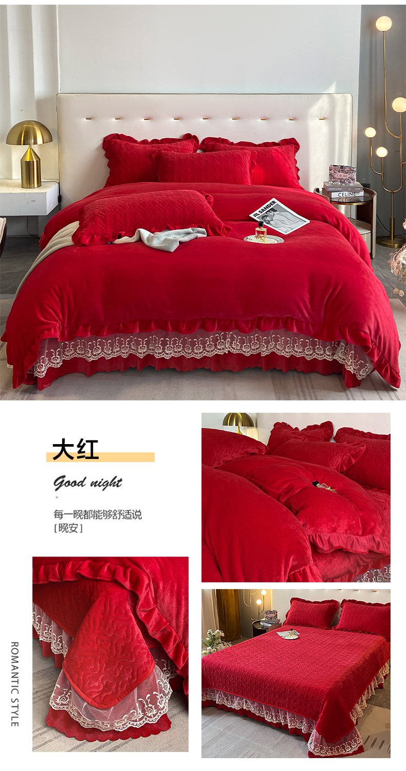 (总)畅畅家纺 2024新款高克重加厚保暖冬季牛奶绒纯色床盖款四件套,豆沙,灰色,天蓝,玉色,中国红