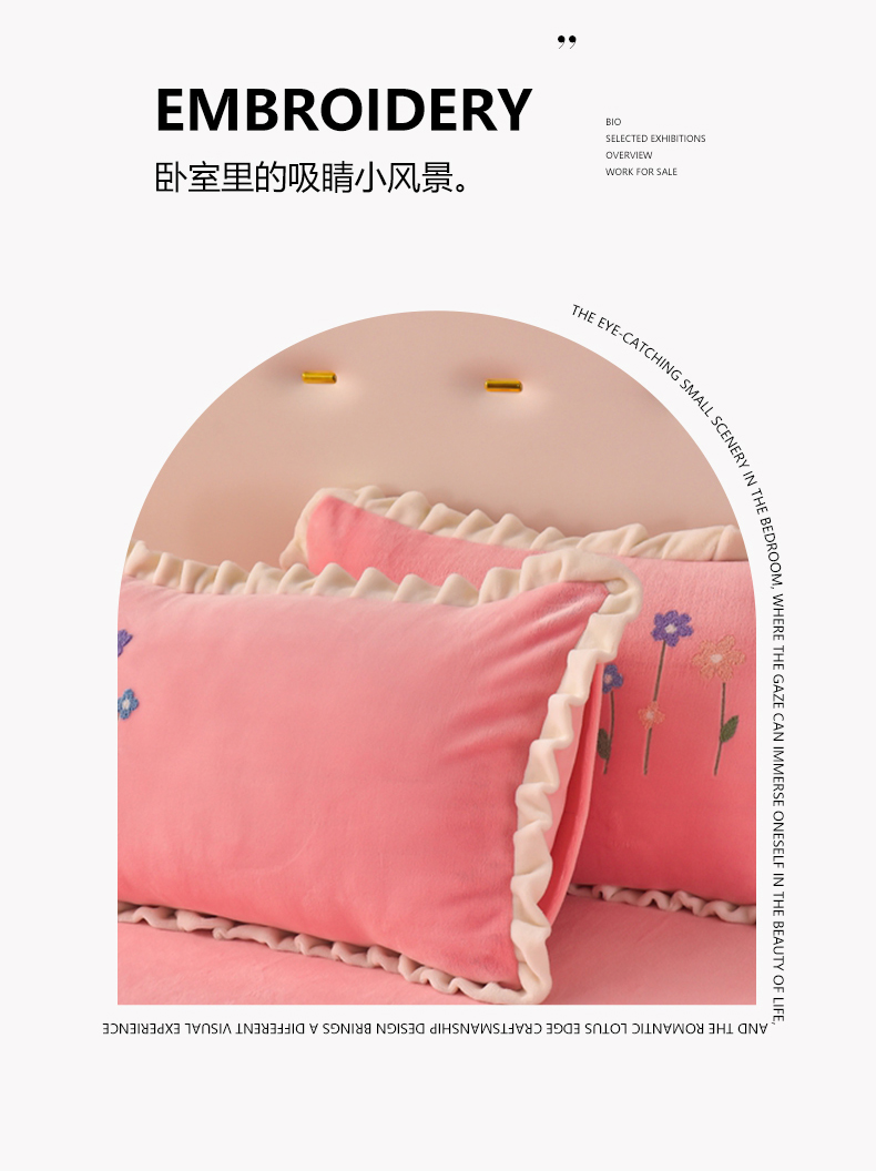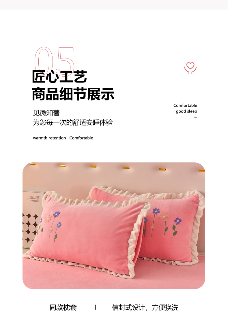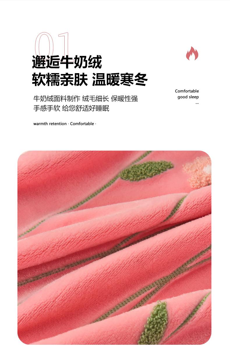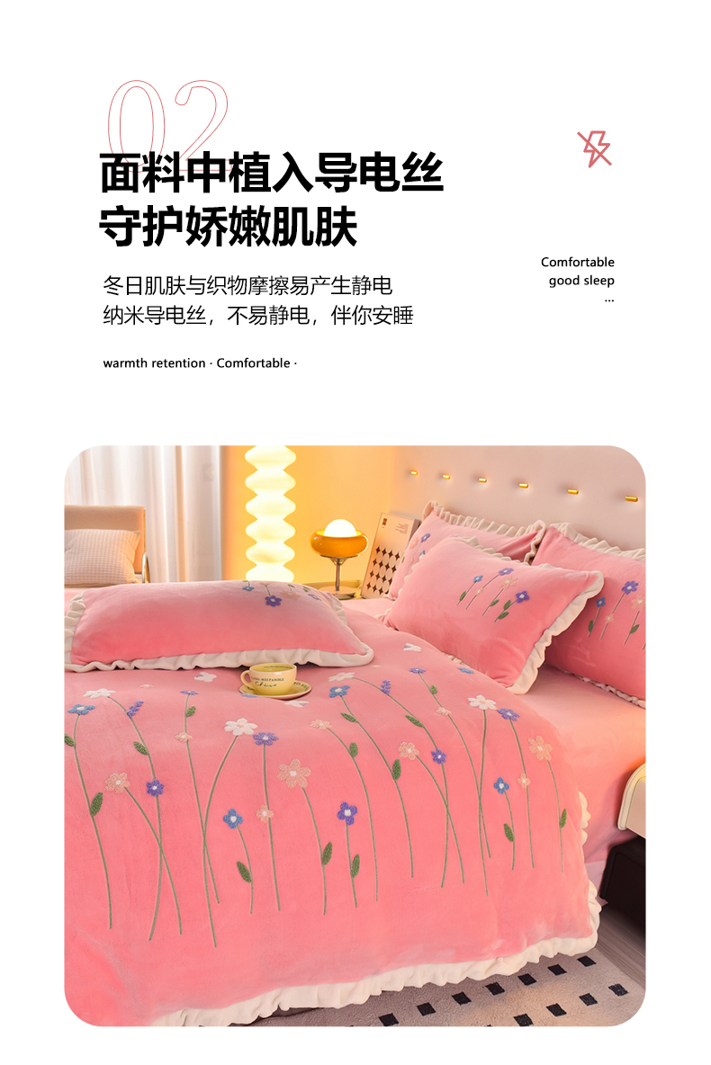 商品名称:畅畅家纺 2025新款A类亲肤舒适高克重牛奶绒绣花系列冬季四件套-繁花似锦 繁花似锦-樱桃粉