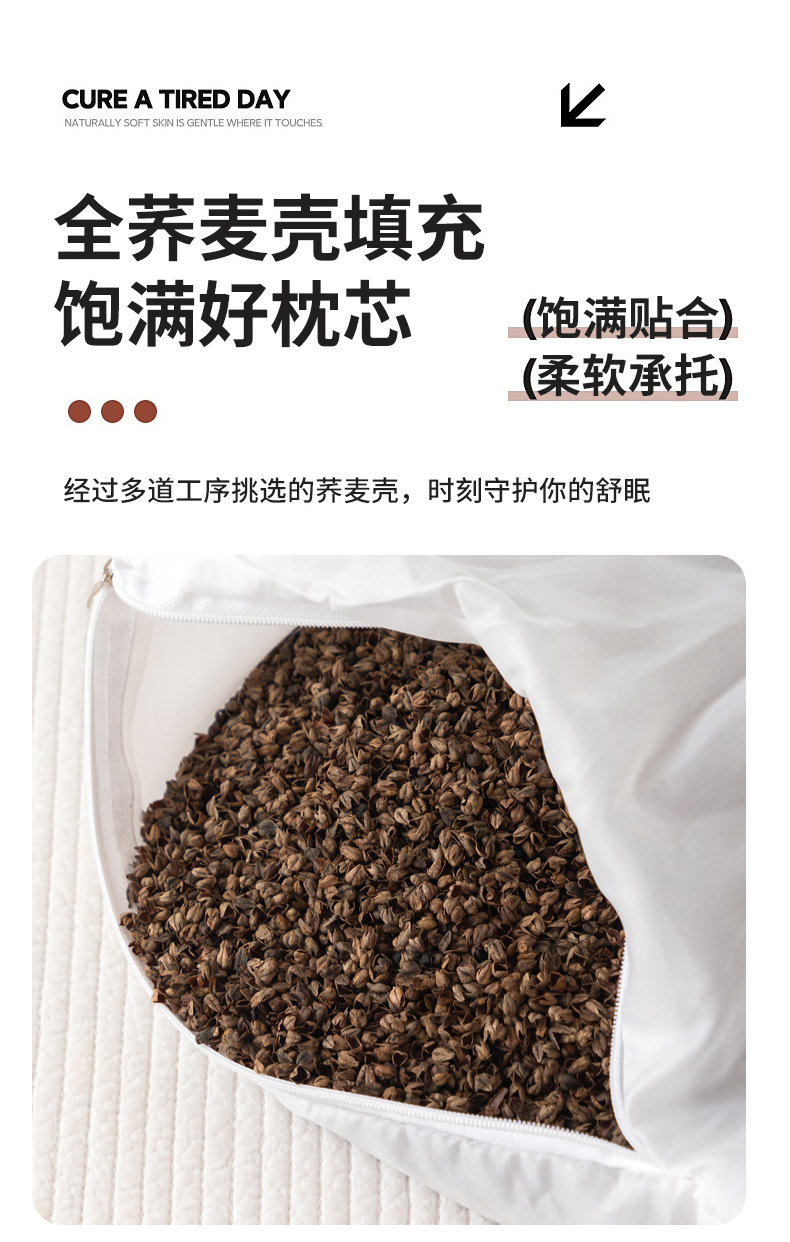 (总)大熊枕芯 2025新款棉麻刺绣款荞麦枕枕头枕芯,棉麻刺绣款荞麦枕