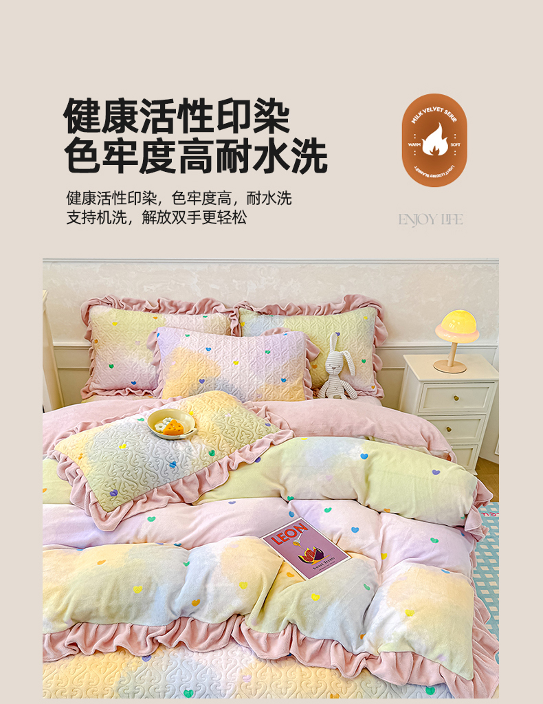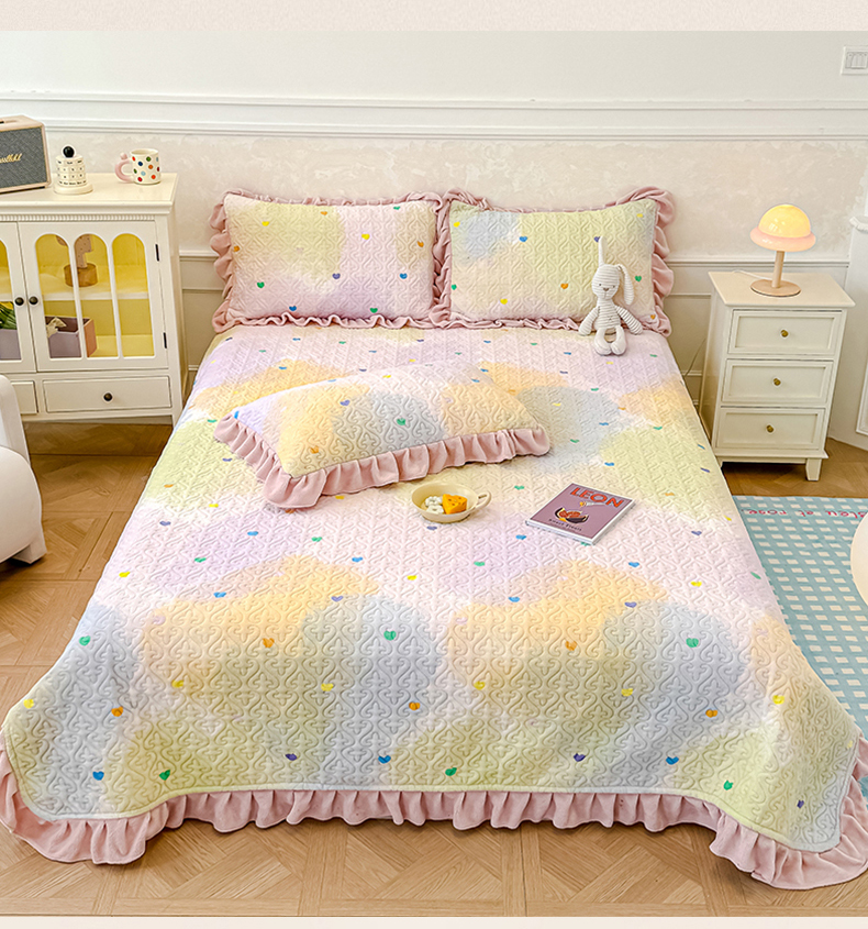 • 91家纺网 家纺一手货源 找家纺 归属 2025新款牛奶绒花边床盖三件套系列 浪漫星空蓝