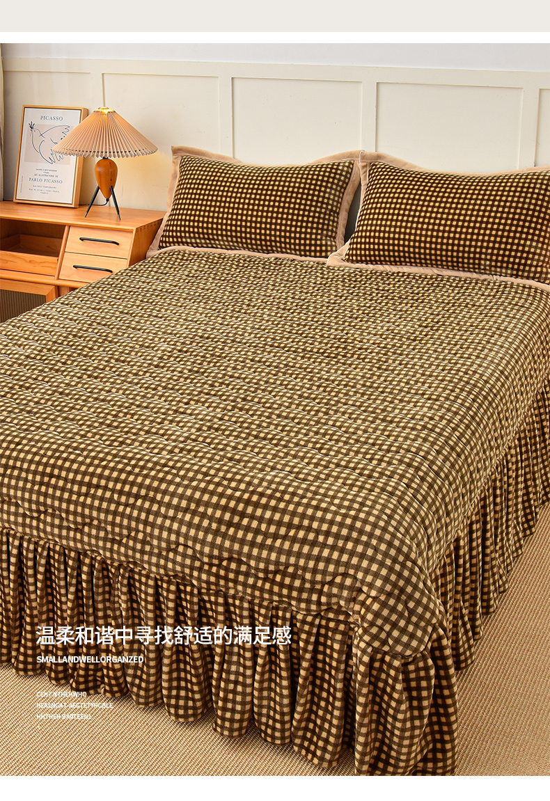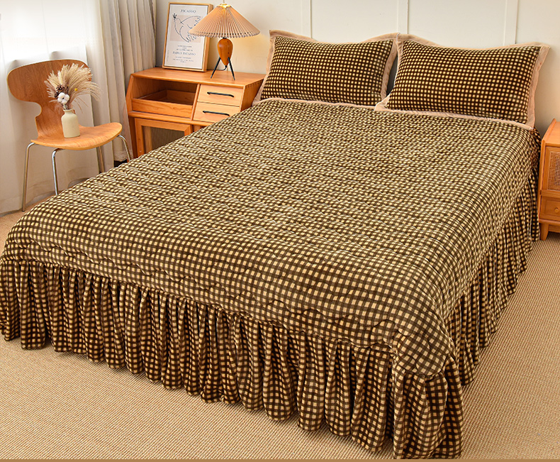 茉保家纺 2024新款无印风款牛奶绒床盖 咖小格