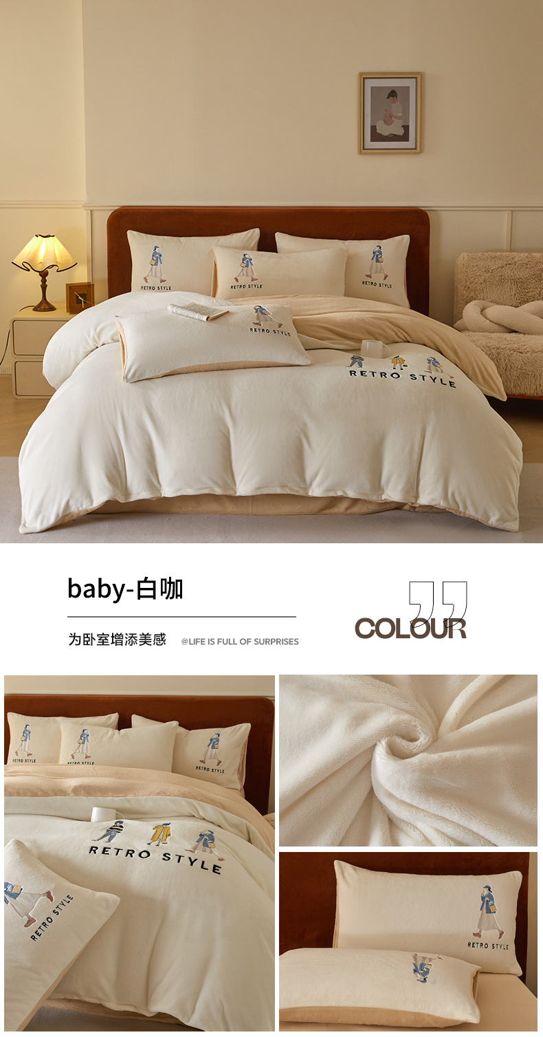 当前位置: 91家纺网 > 商品网购 > 床品套件 > 四件套 > 牛奶绒四件套 > ONE TWO ONE 121 新品【牛奶绒刺绣四件套】2025毛毯被子四件套单件床单被套床笠珊瑚绒牛奶绒冬被法兰绒兔毛绒 baby-浅紫