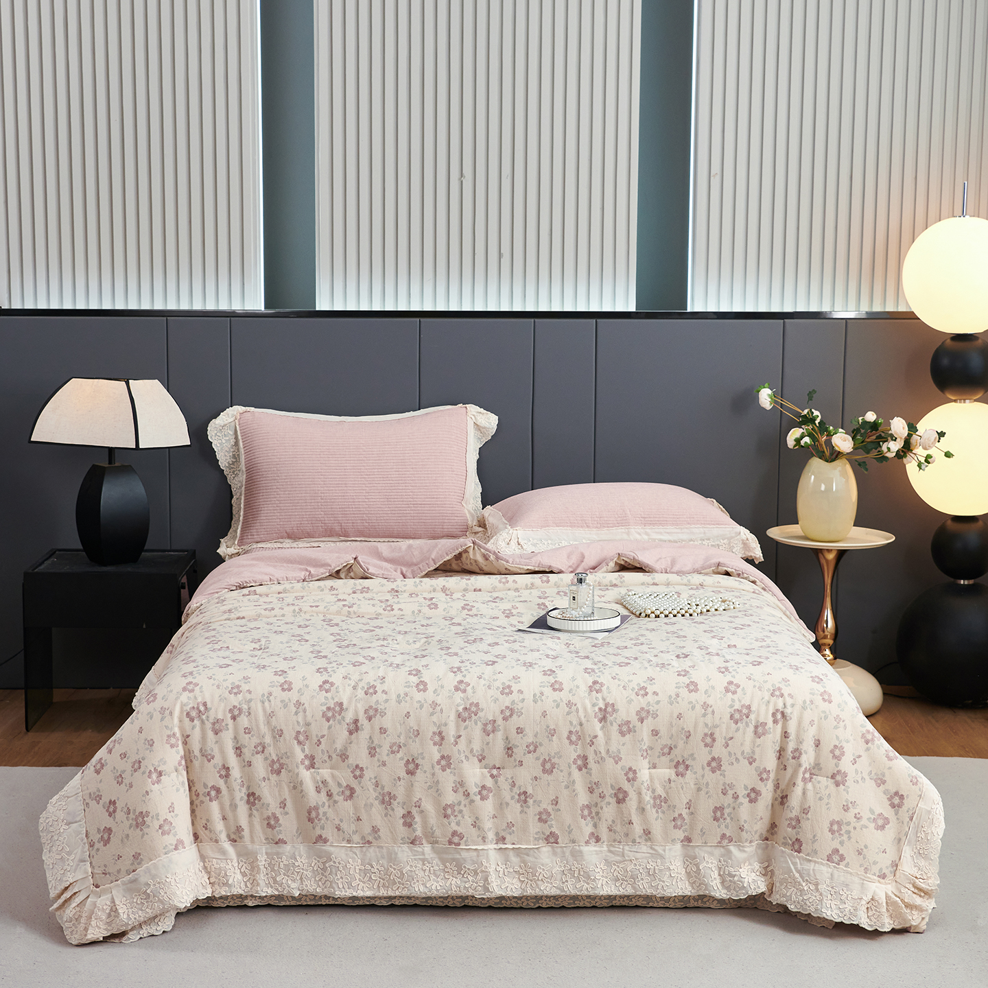 (总)优希家纺 2025新款安雅夏被床盖四件套,粉色,黄色,灰色,卡其