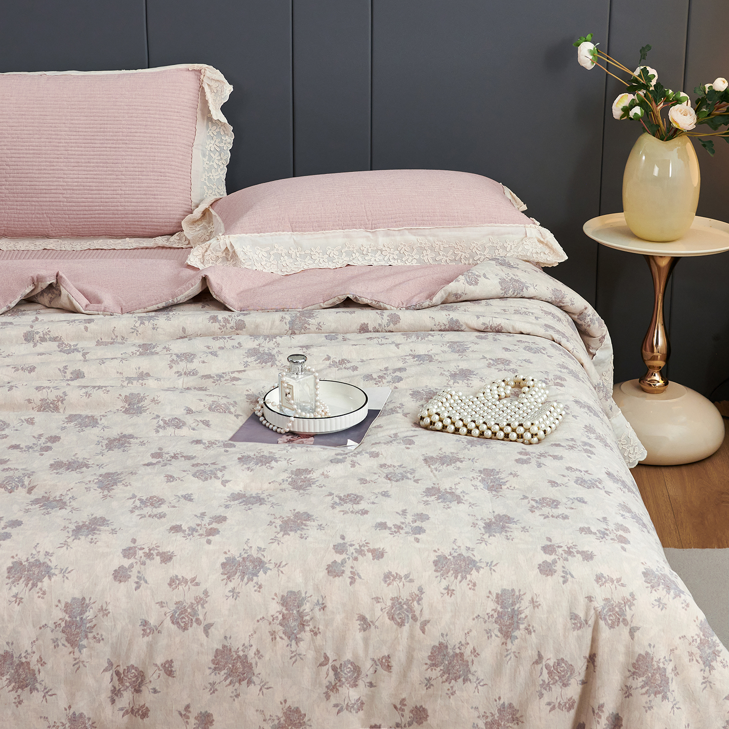 (总)优希家纺 2025新款米娅千金多功能春秋被四件套,米白色,粉色,卡其,绿色