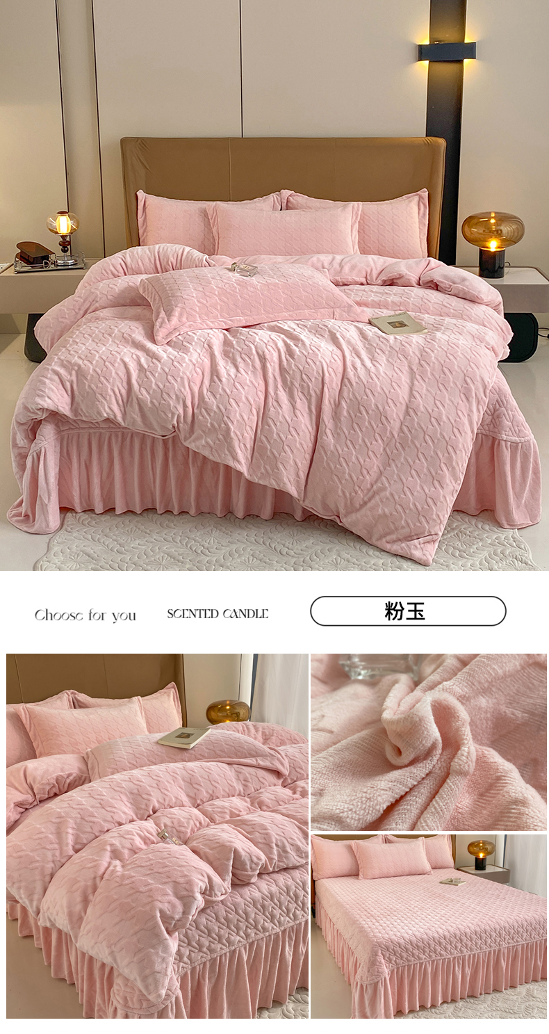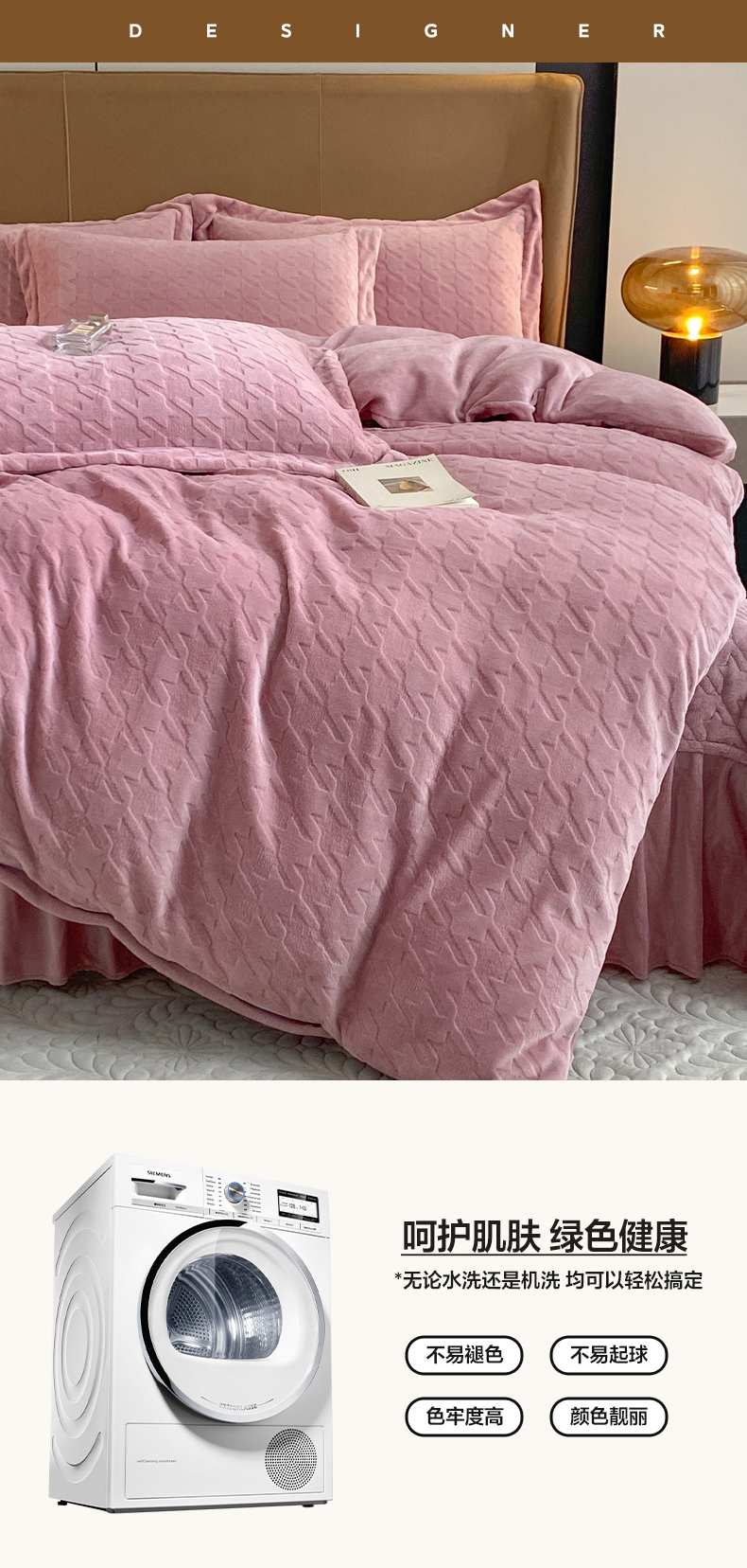 商品名称:美伦美焕 2025新款立体雕花绒床盖款四件套 粉玉