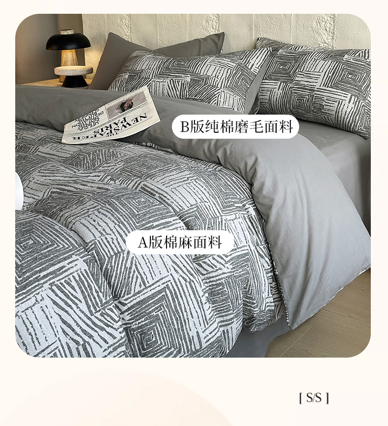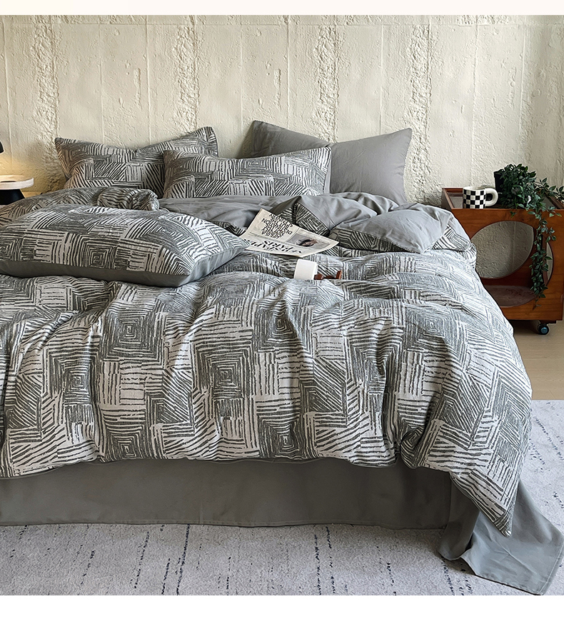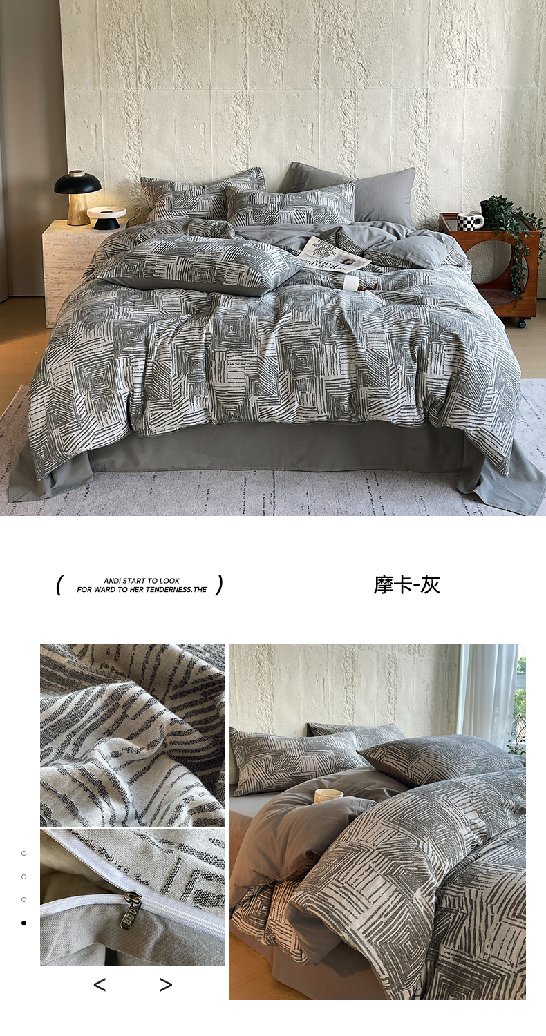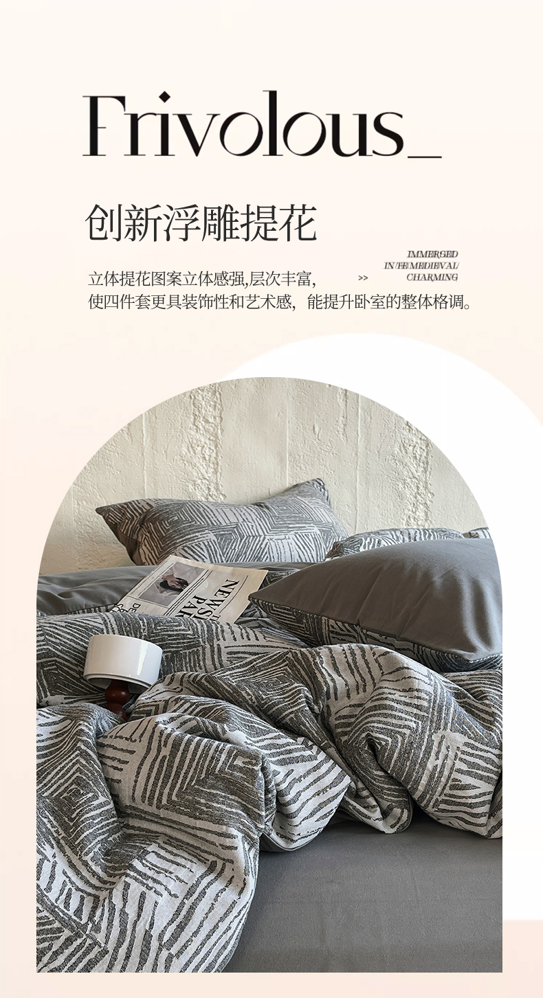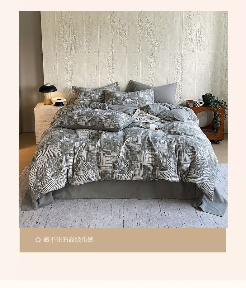 商品名称:琪格格纺织 2025新款复古简约棉麻轻奢大提花全棉加厚磨毛四件套 摩卡-灰