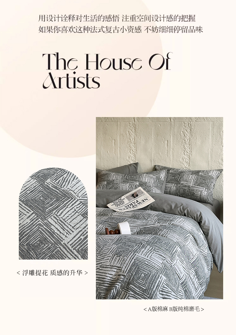 (总)琪格格纺织 2025新款复古简约棉麻轻奢大提花全棉加厚磨毛四件套,纳斯-棕,摩卡-本色麻,纳斯-灰,纳斯-本色麻,摩卡-灰,摩卡-棕