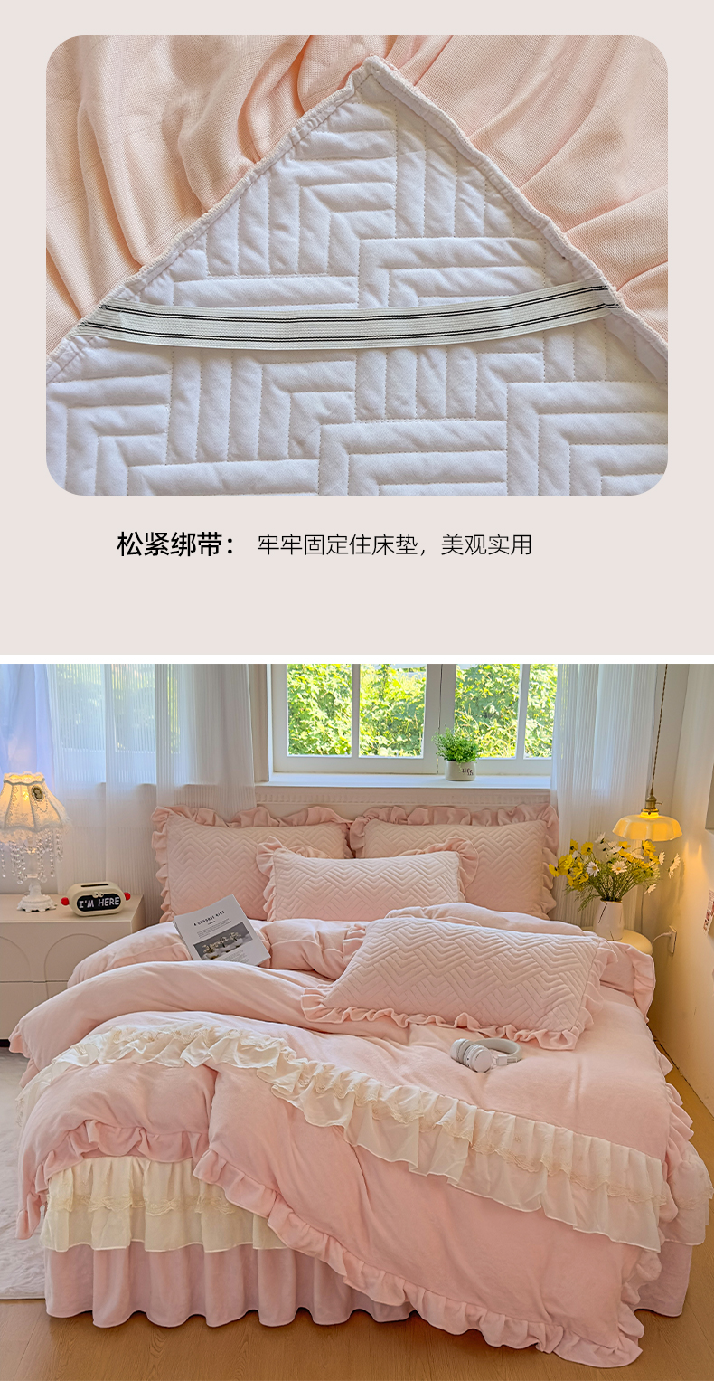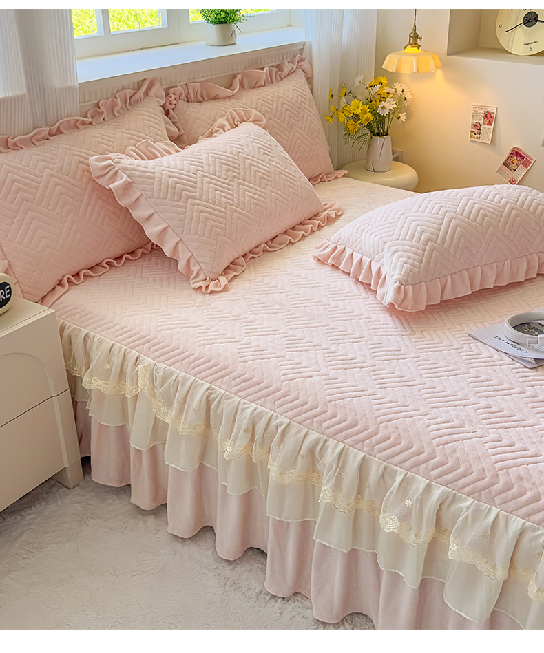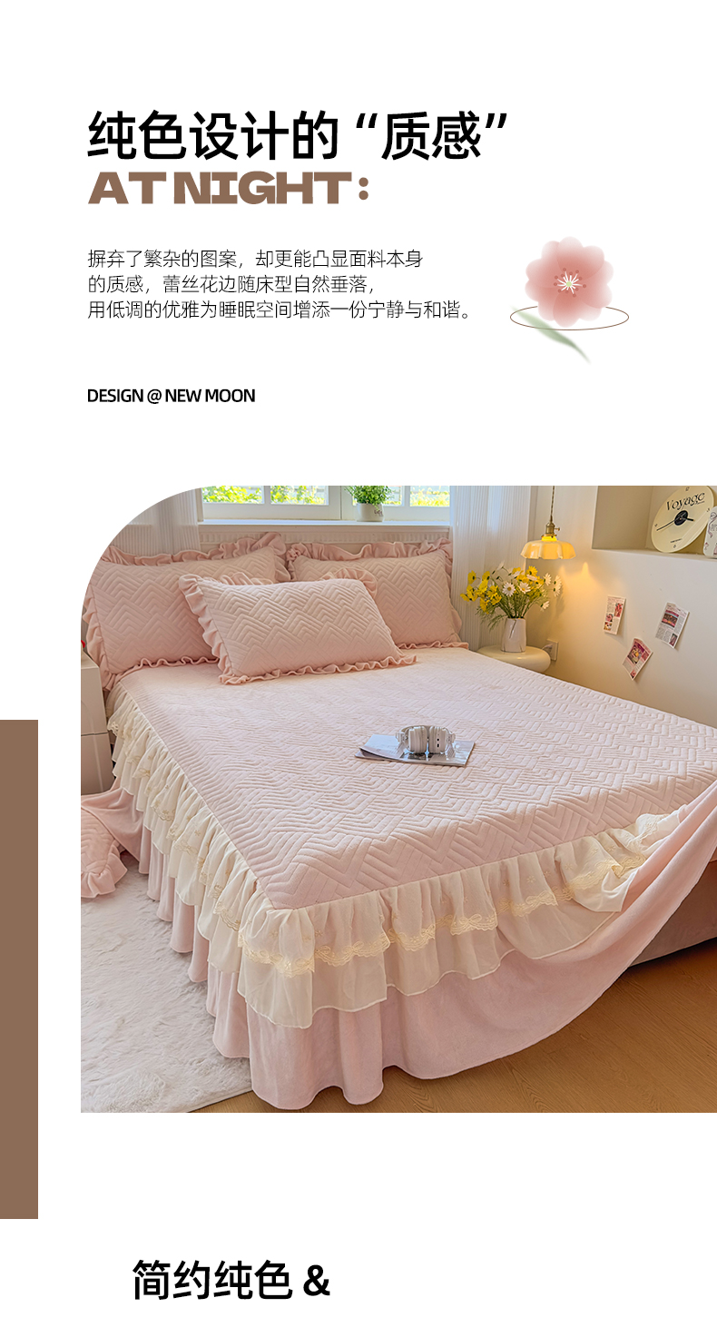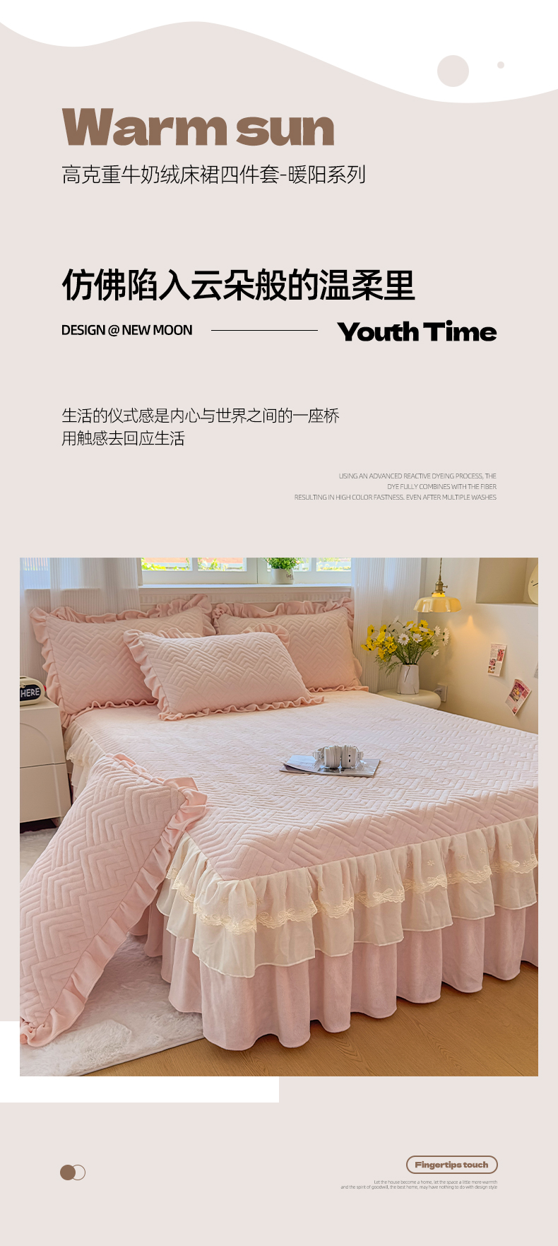 商品名称:家之硕家纺 2025冬款高克重牛奶绒床裙四件套--暖阳系列 暖阳系列--粉
