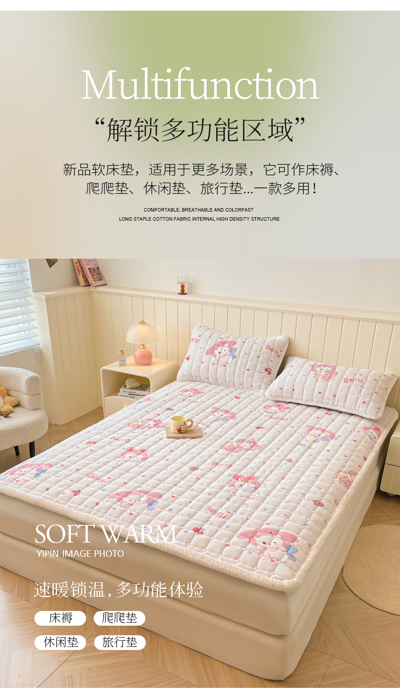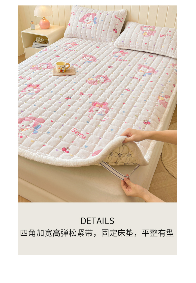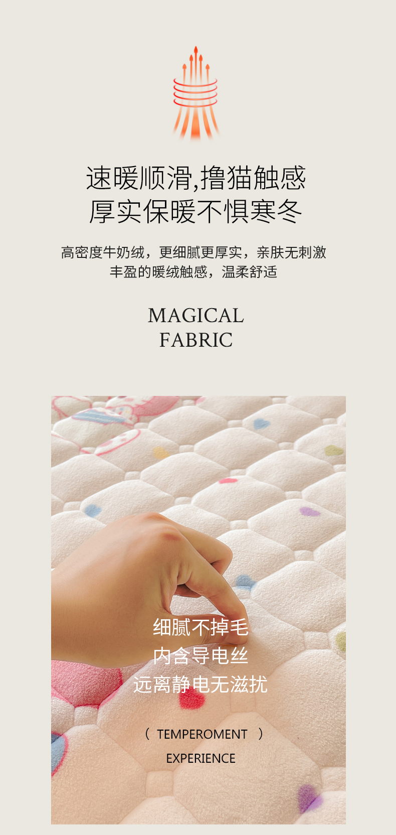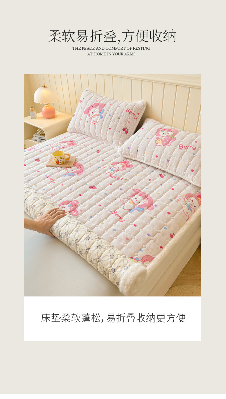 • 91家纺网 家纺一手货源 找家纺 LIFE.丽芙 2025秋冬新款牛奶绒加厚夹棉床垫床护垫单件印花卡通小清新床褥床垫子三件套 乖乖喵
