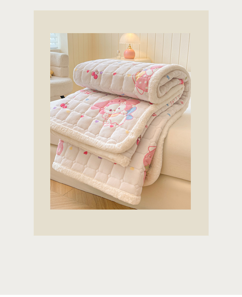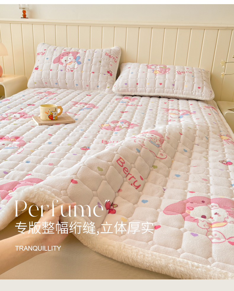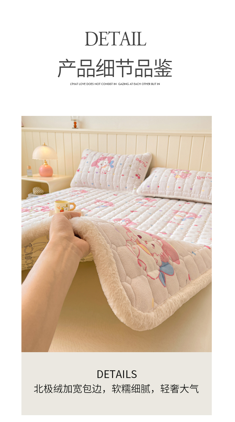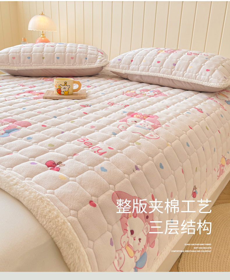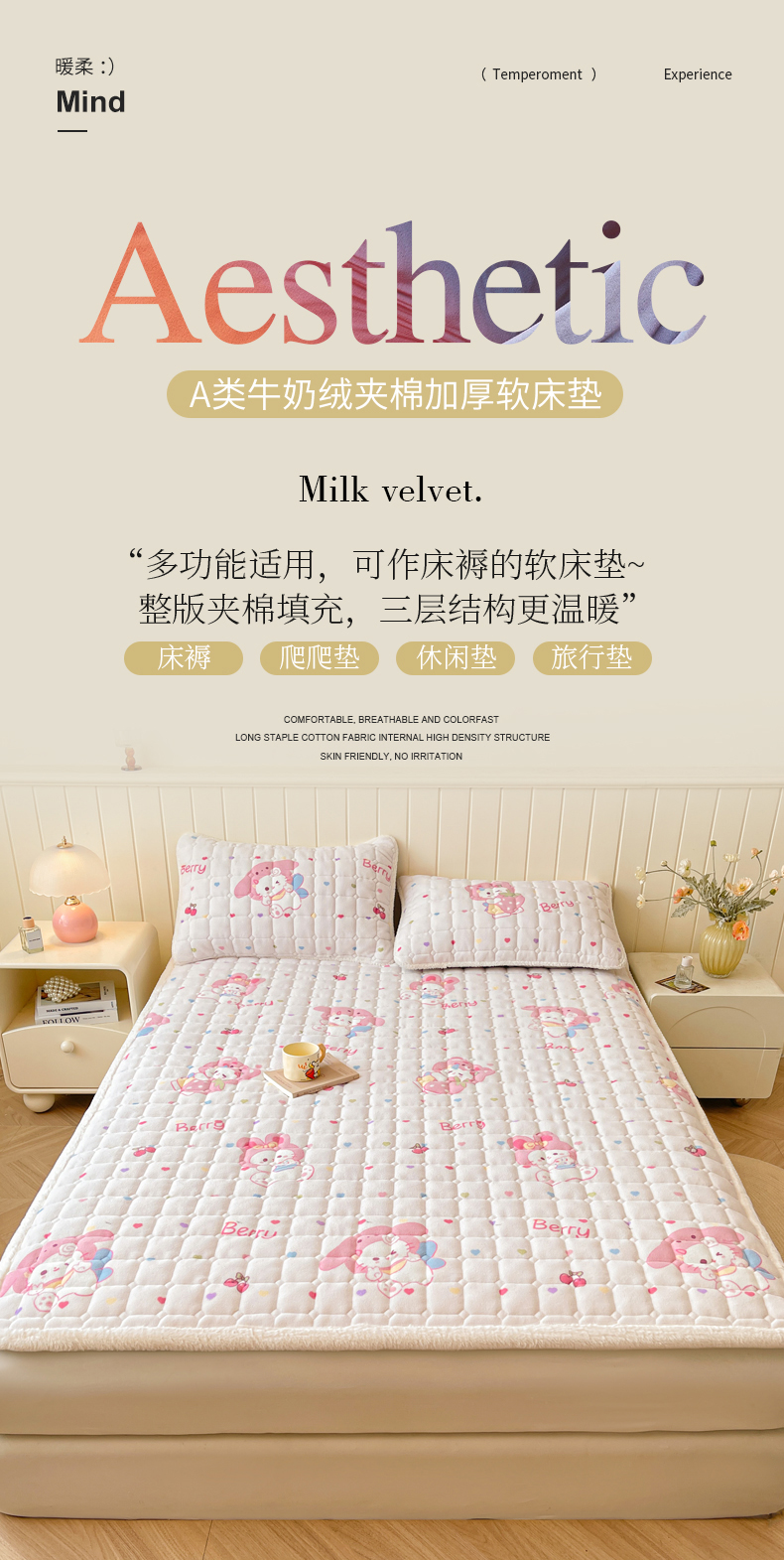 • 91家纺网 家纺一手货源 找家纺 LIFE.丽芙 2025秋冬新款牛奶绒加厚夹棉床垫床护垫单件印花卡通小清新床褥床垫子三件套 乖乖喵