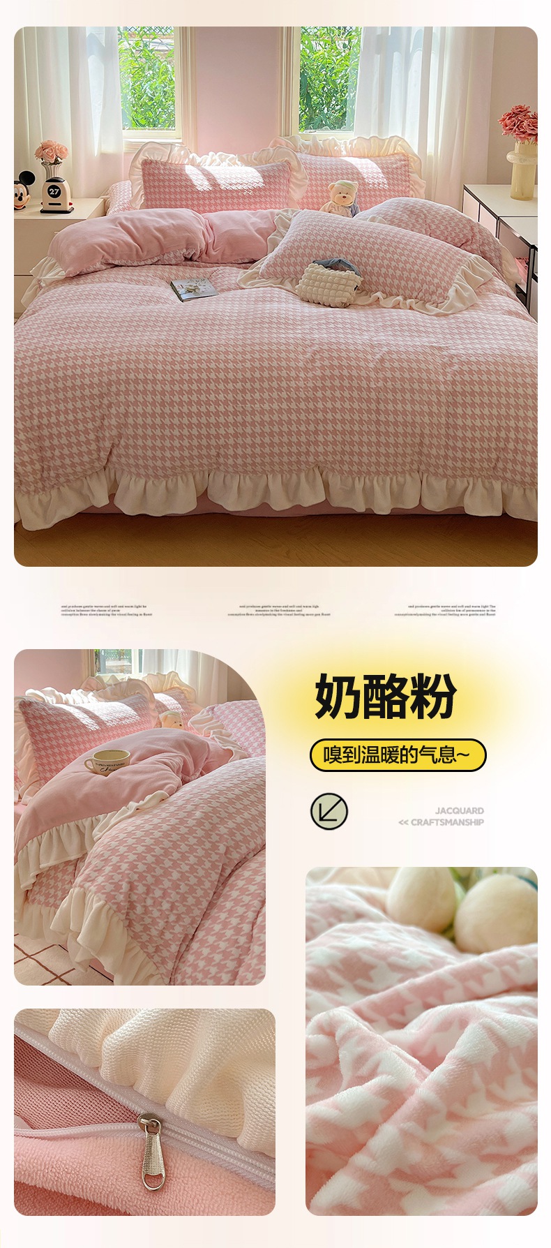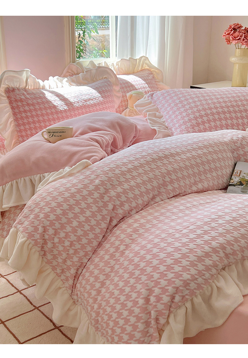 当前位置: 91家纺网 > 商品网购 > 床品套件 > 四件套 > 牛奶绒四件套 > 轻奢坊 2025新款牛奶绒千鸟格烂花花边款四件套-场景一 奶酪蓝