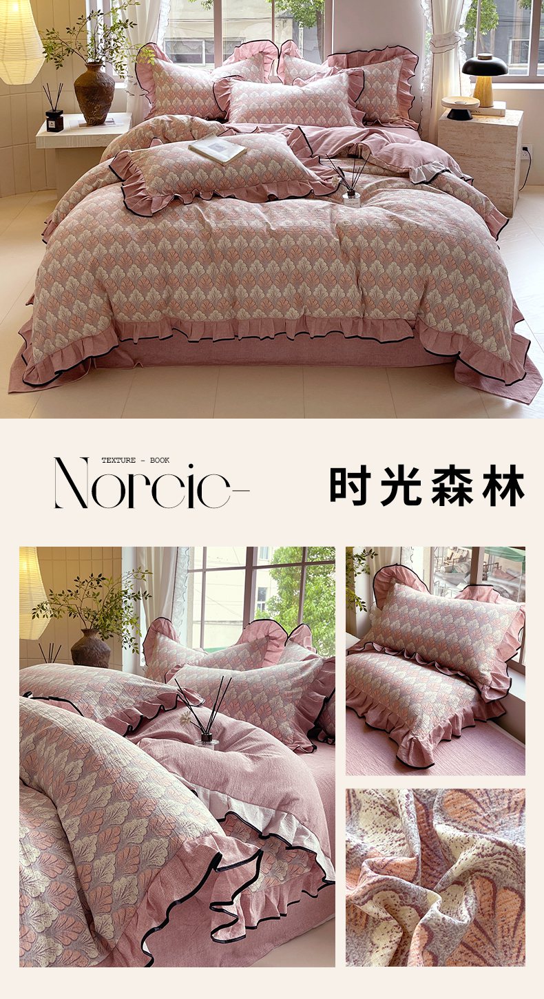 梵克保罗 2025秋冬新品10A抗菌原麻荷叶边床单款三件套四件套 绿野仙踪