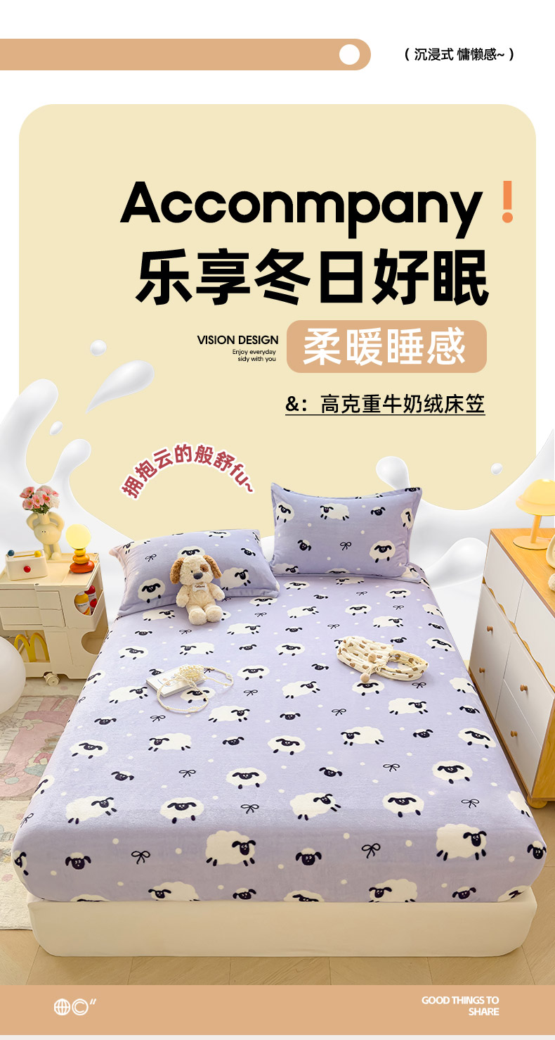 商品名称:久云居 2025新款高克重牛奶绒床笠 绵阳牧场