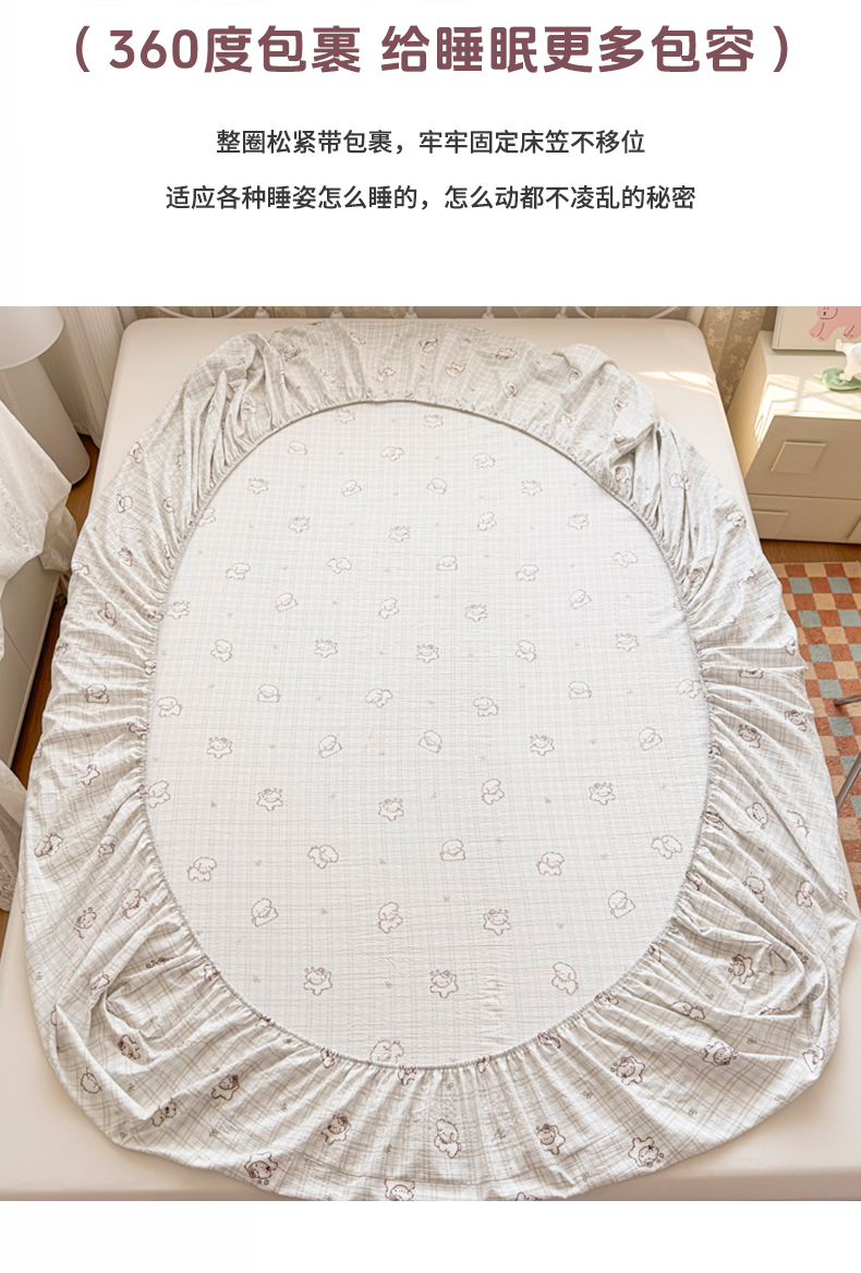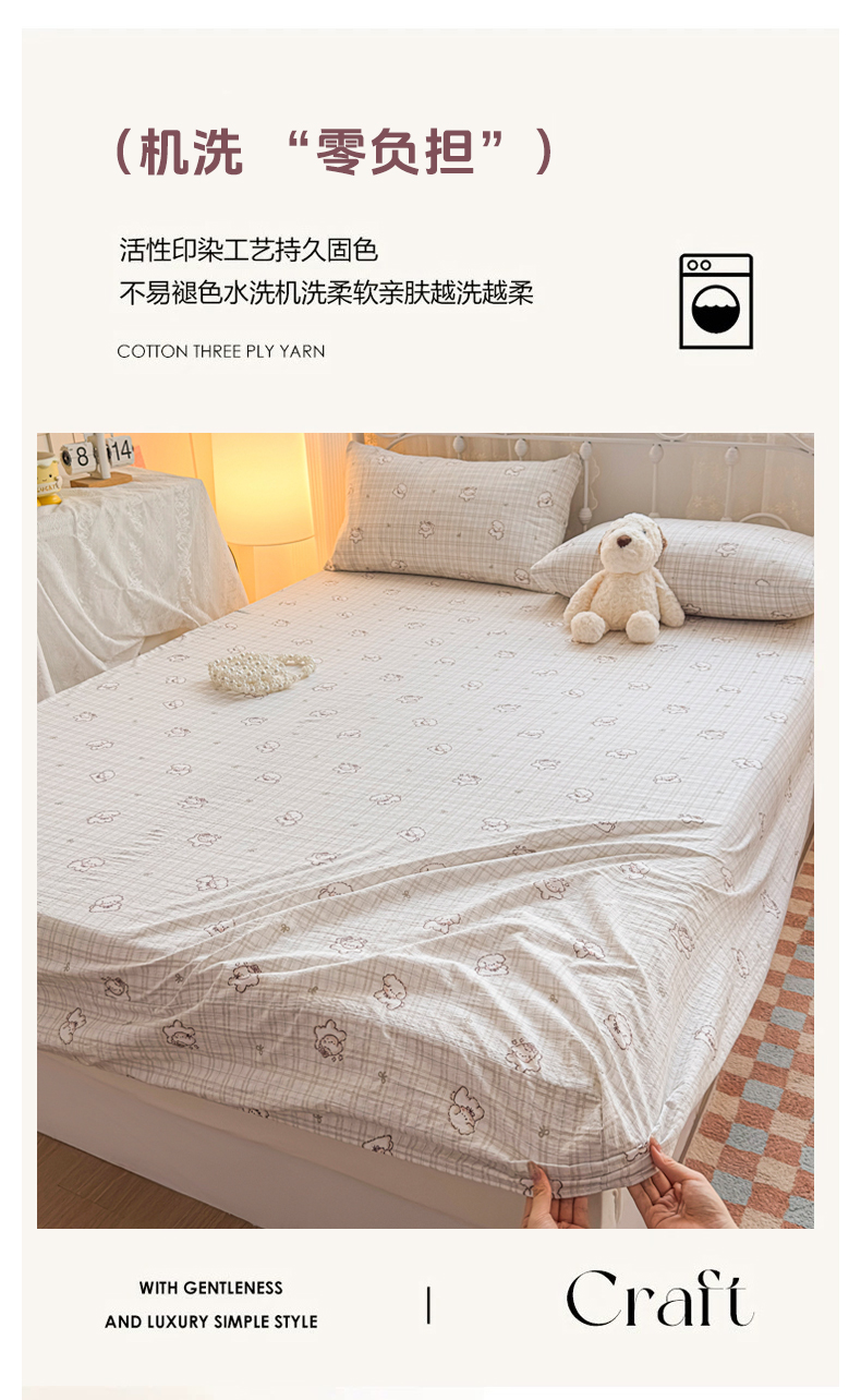 爱彼家纺 2025新款水洗水洗棉印花床笠单品床笠床笠三件套风格二 小甜狗
