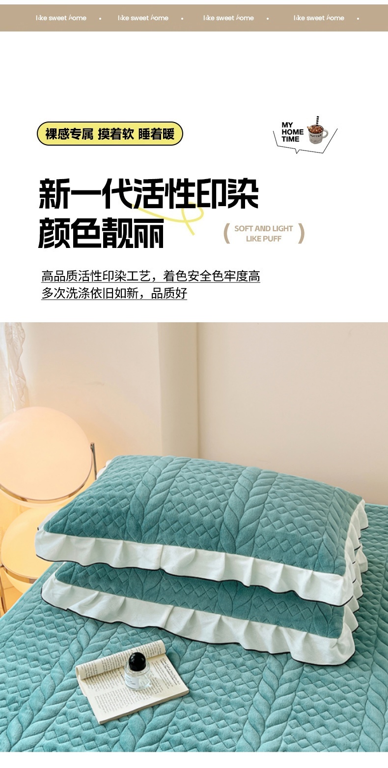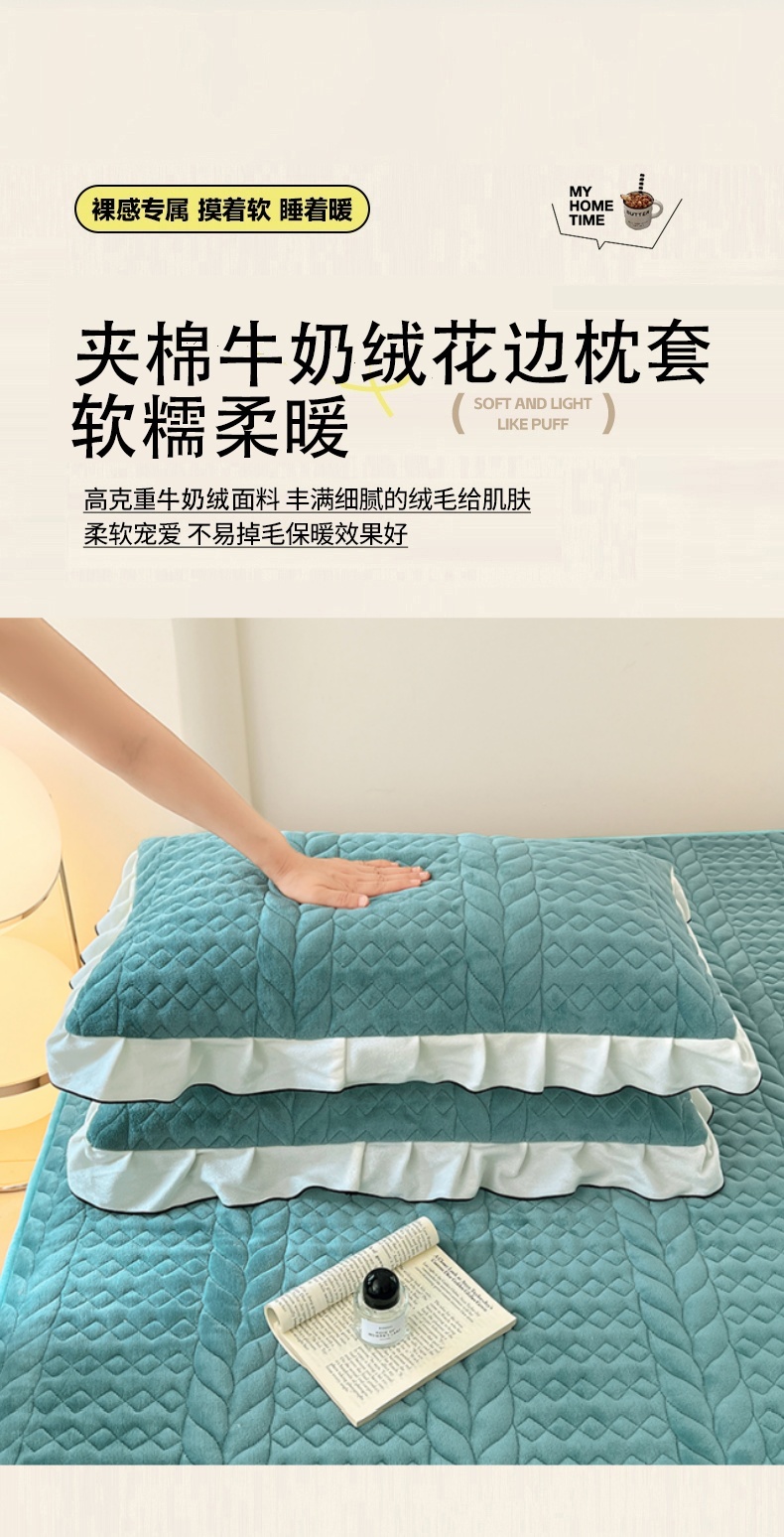 商品名称:梦舒羽 2025新款牛奶绒花边夹棉枕套单人宿舍枕芯套枕头套一对-轻奢 花边轻奢款-浅水兰