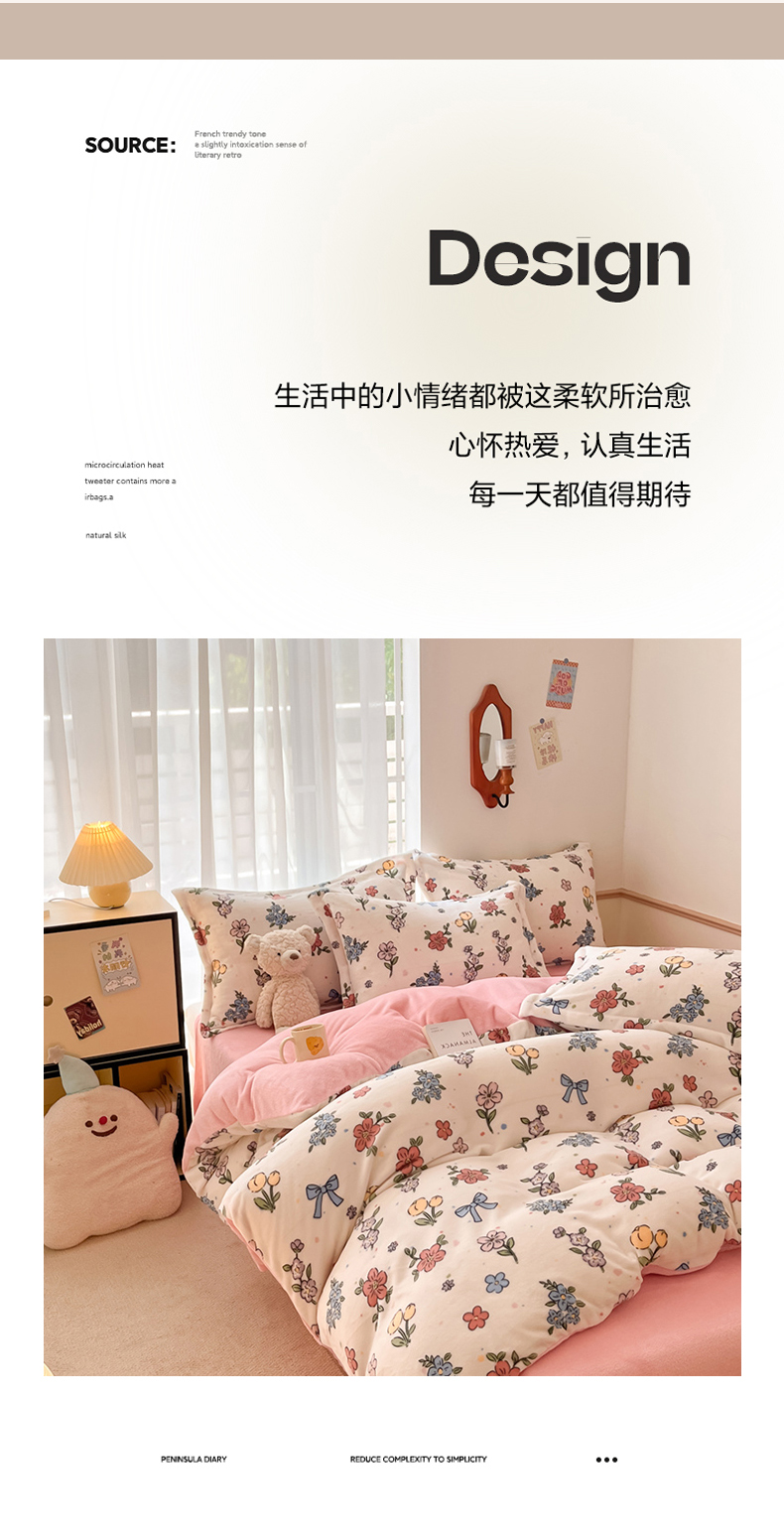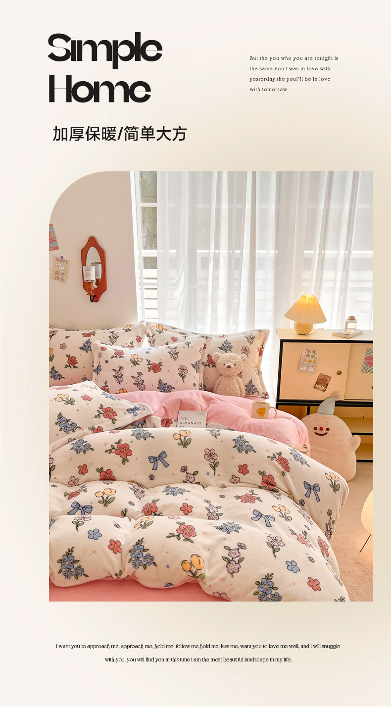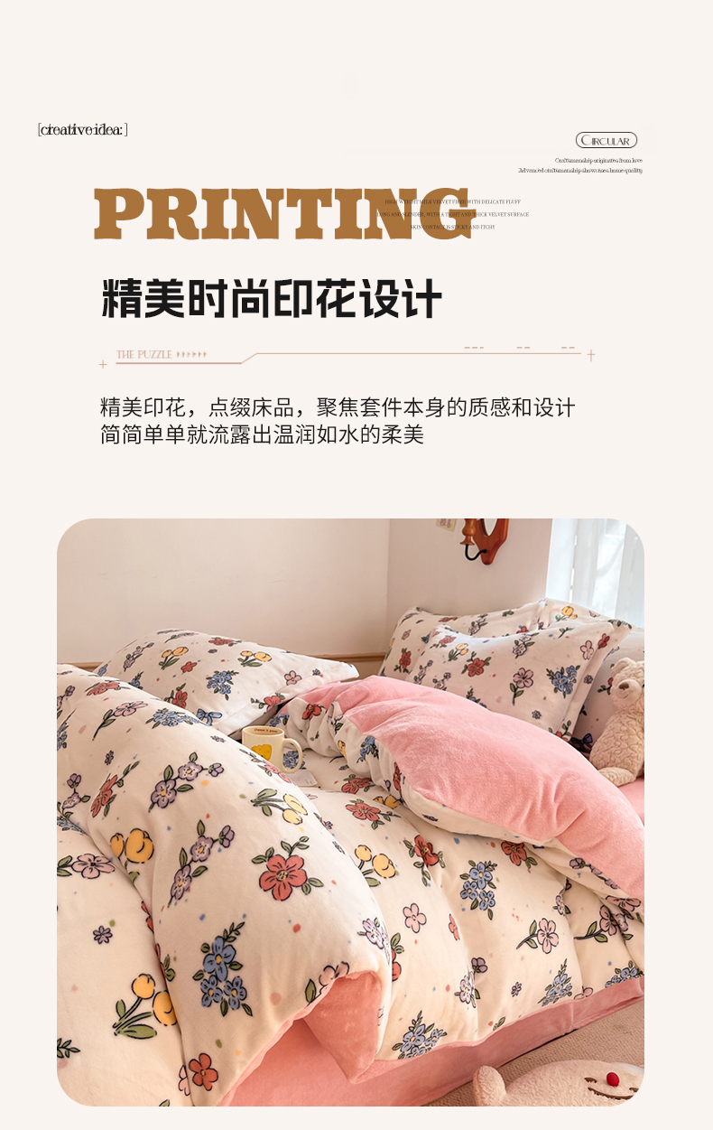 当前位置: 91家纺网 > 商品网购 > 床品套件 > 四件套 > 牛奶绒四件套 > 寻米 2025新款高克重加厚保暖牛奶绒四件套-第二批 花田结语-粉