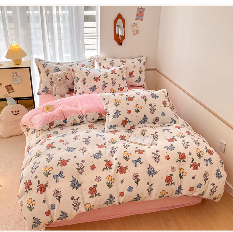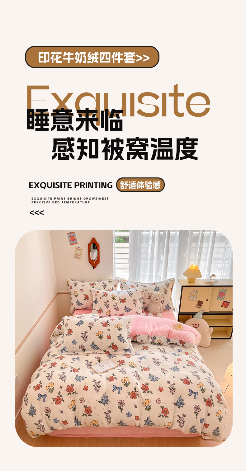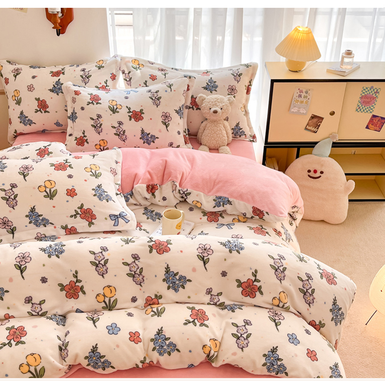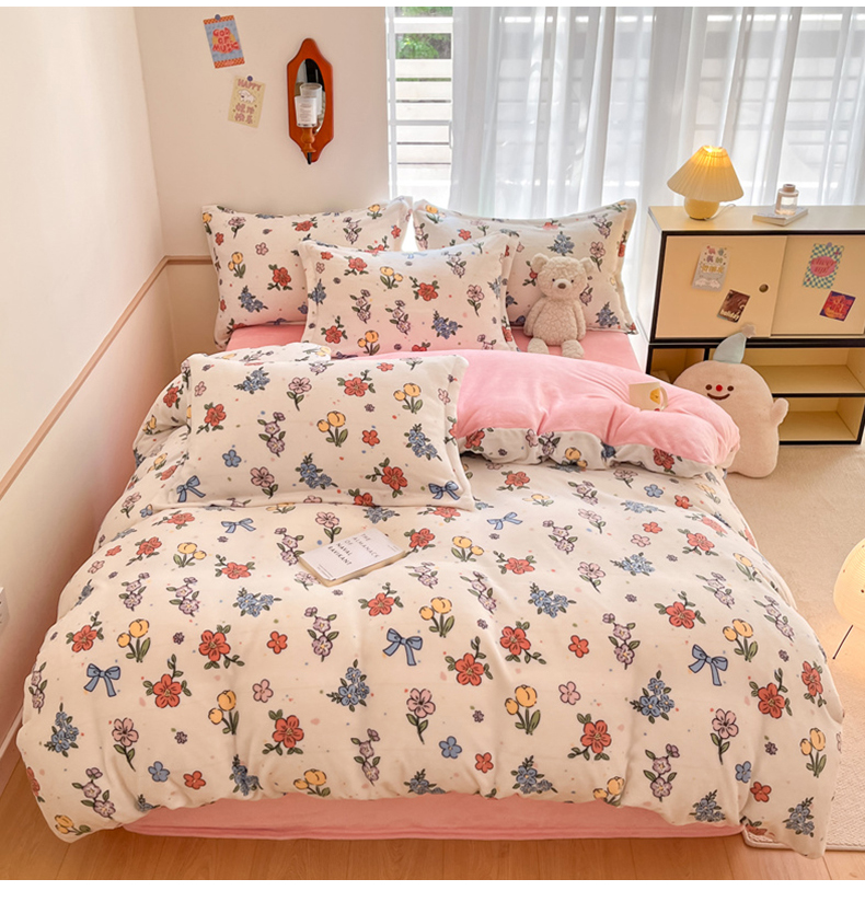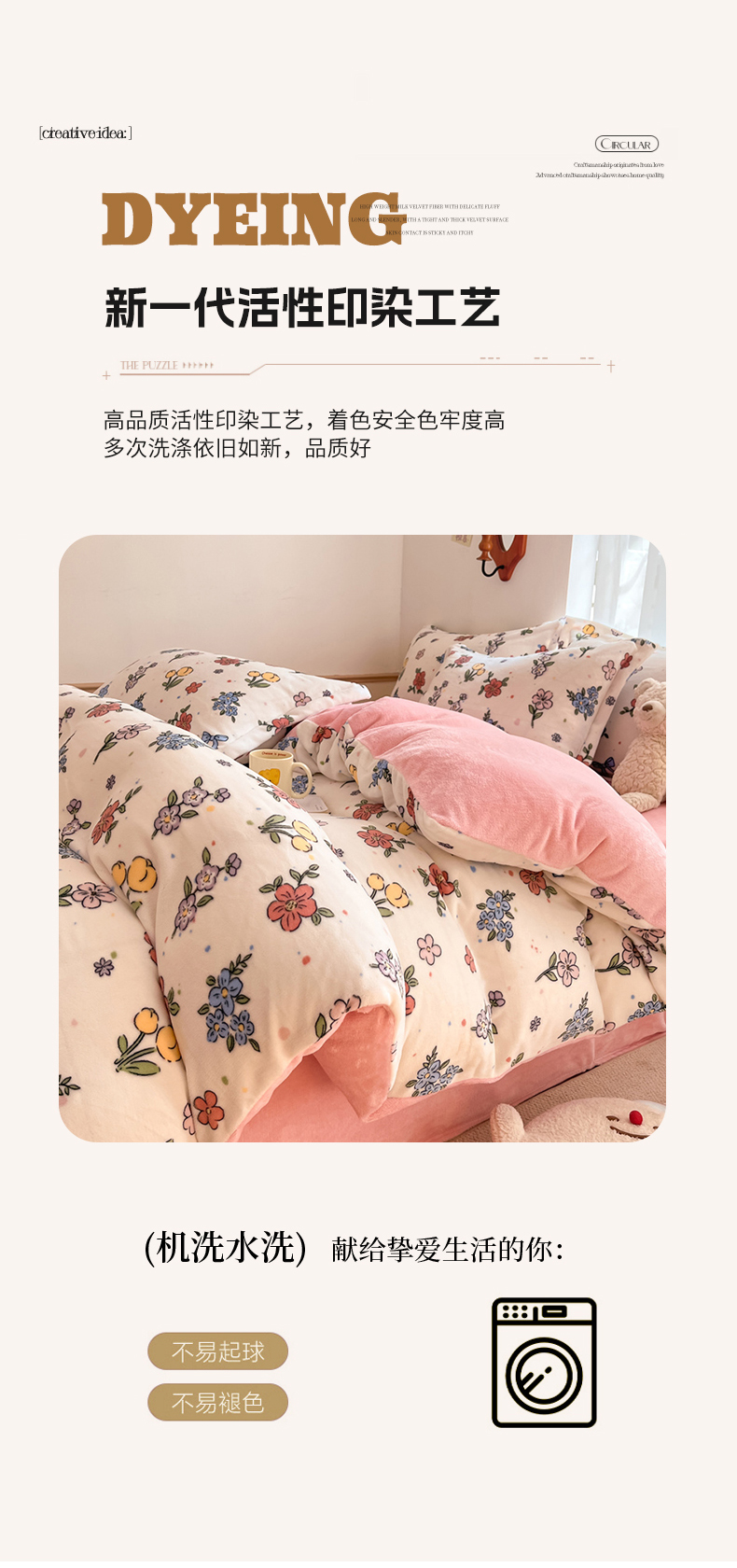 当前位置: 91家纺网 > 商品网购 > 床品套件 > 四件套 > 牛奶绒四件套 > 寻米 2025新款高克重加厚保暖牛奶绒四件套-第二批 花田结语-粉