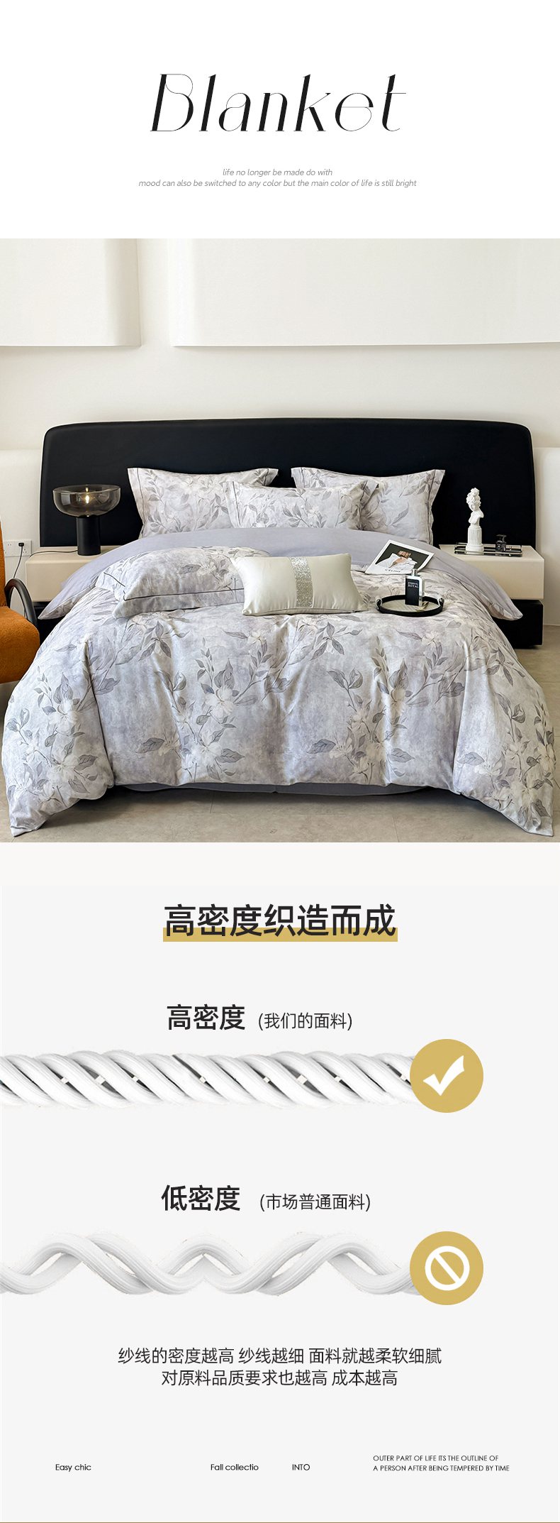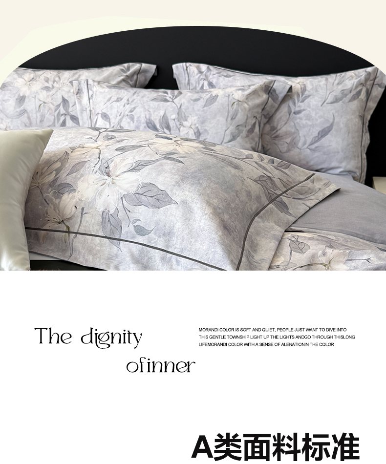 当前位置: 91家纺网 > 商品网购 > 床品套件 > 四件套 > 普通磨毛四件套 > 梵克保罗 2025秋冬新款数码印花全棉磨毛单被套三件套四件套系列 琼枝-灰