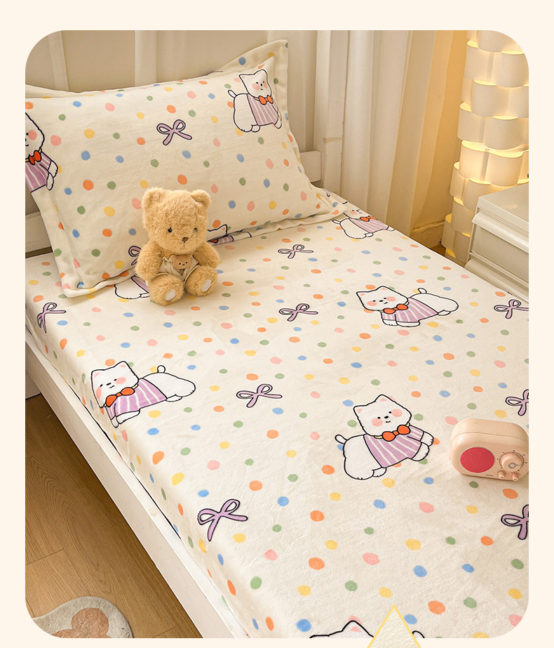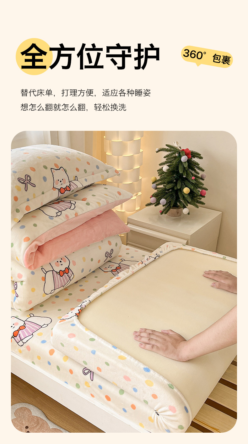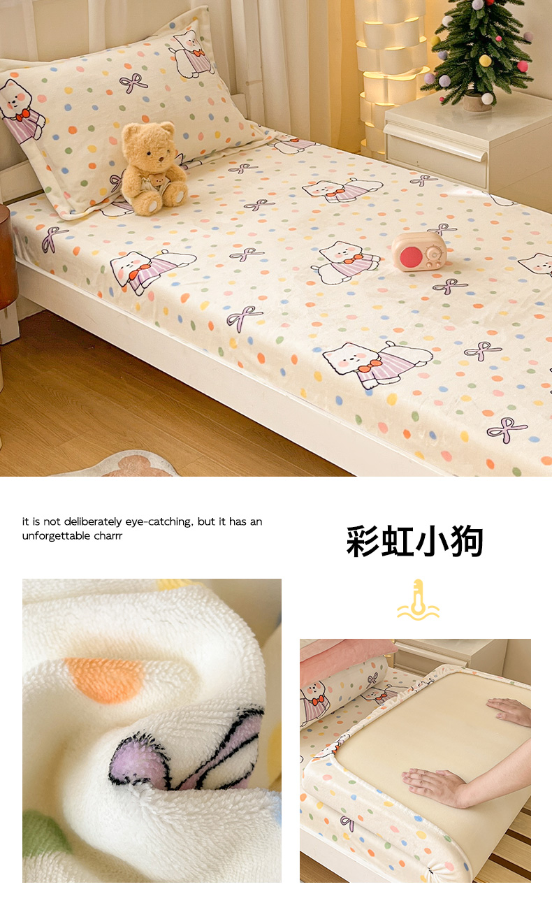 寻米 2025新款高克重加厚保暖牛奶绒床笠-宿舍图 彩虹小狗