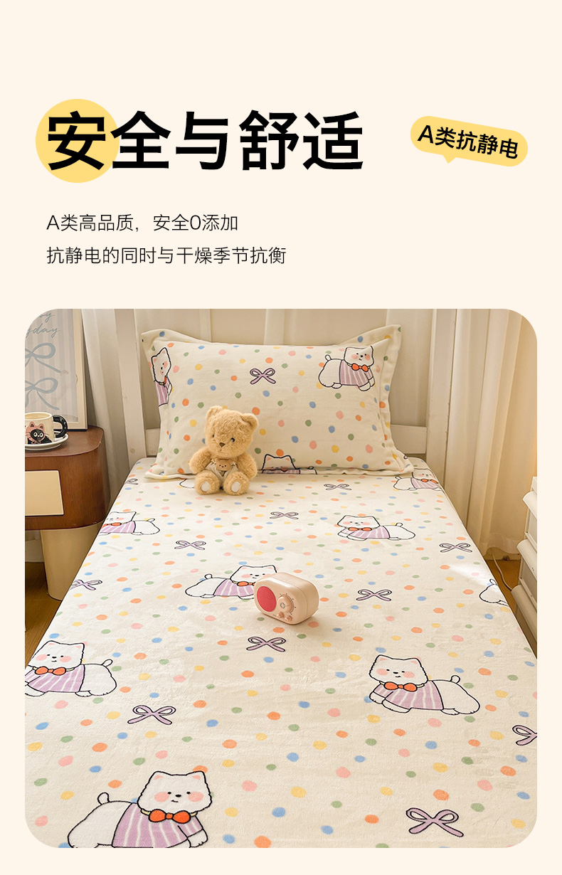 • 91家纺网 家纺一手货源 找家纺 寻米 2025新款高克重加厚保暖牛奶绒床笠-宿舍图 彩虹小狗