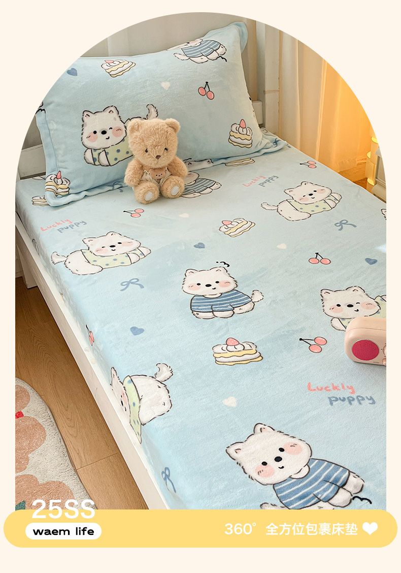 寻米 2025新款高克重加厚保暖牛奶绒床笠-宿舍图 小熊维尼