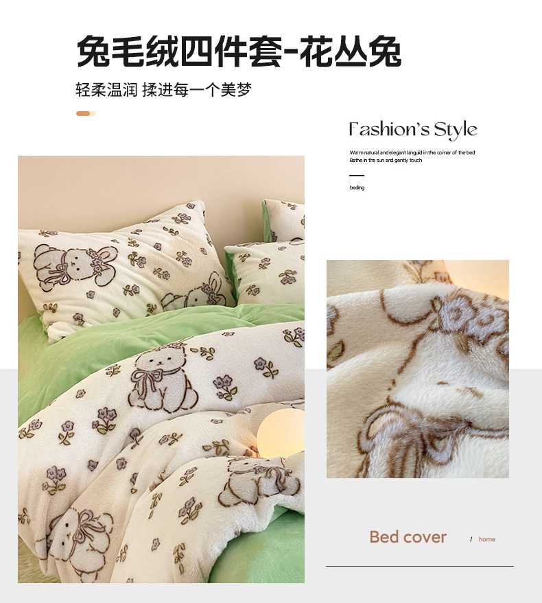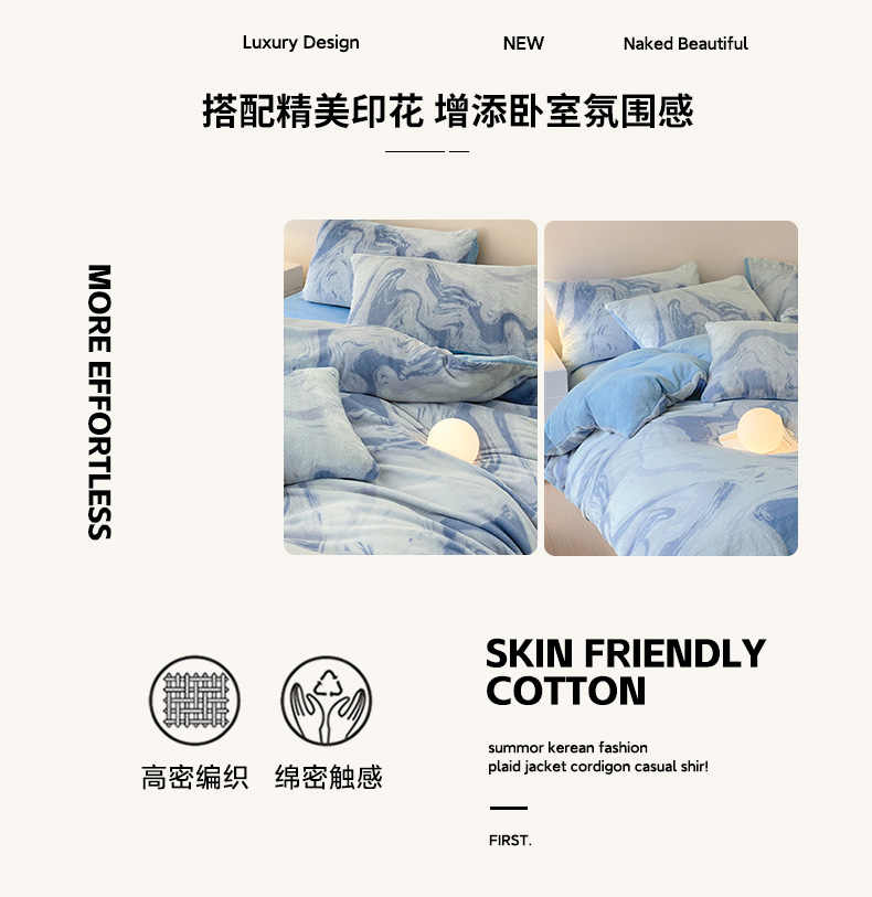 当前位置: 91家纺网 > 商品网购 > 床品套件 > 四件套 > 牛奶绒四件套 > 安哆啦家纺 2025新款高克重兔毛绒印花牛奶绒四件套 波澜