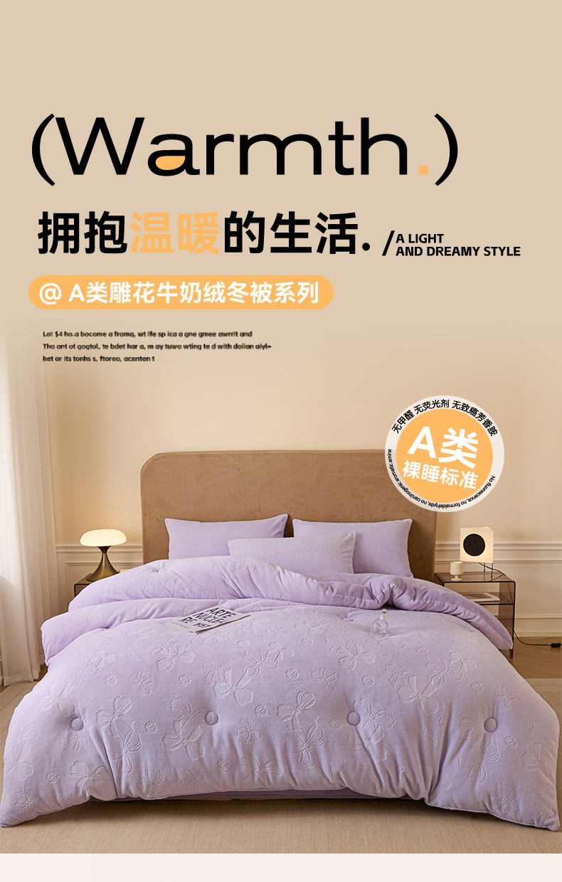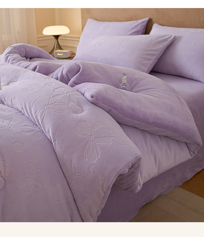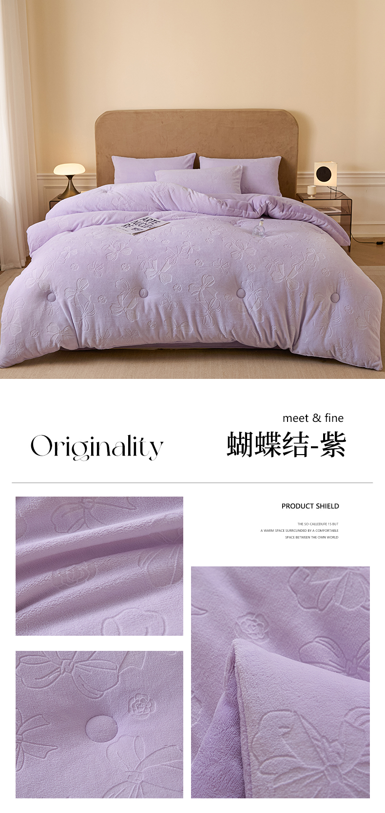 商品名称:星座家纺 2025新款雕花绒被子被芯冬被 蝴蝶结-紫