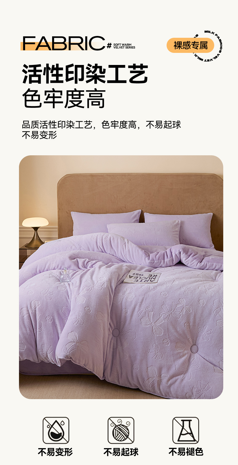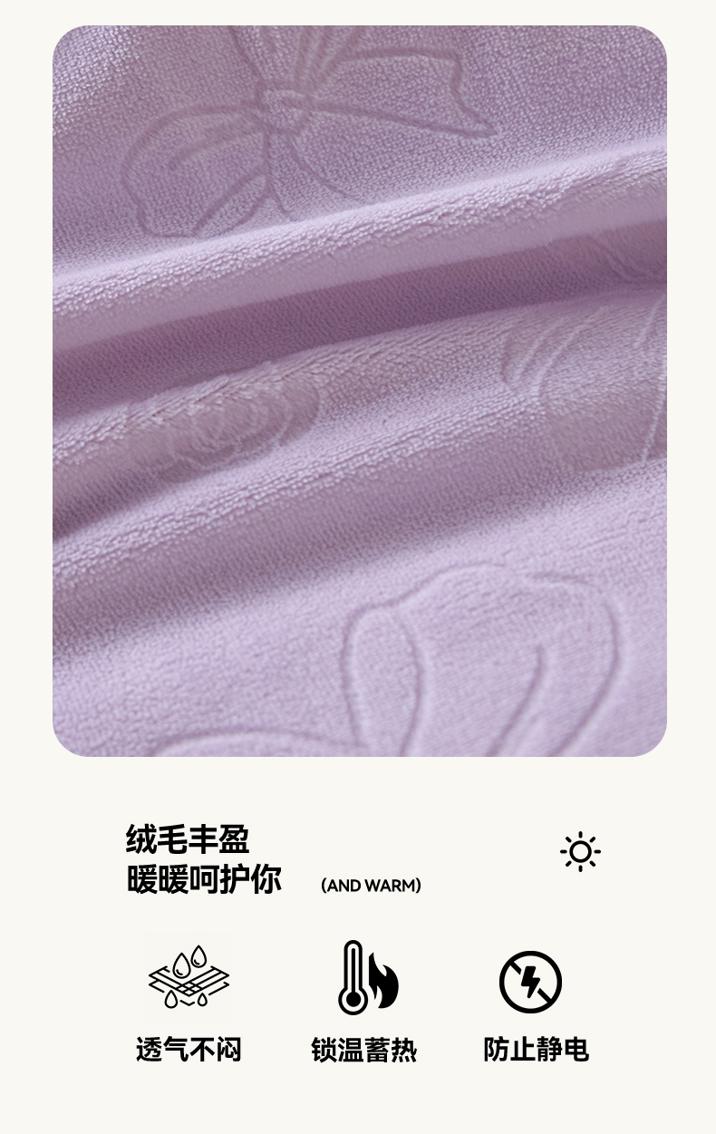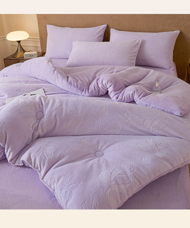 星座家纺 2025新款雕花绒被子被芯冬被 蝴蝶结-紫
