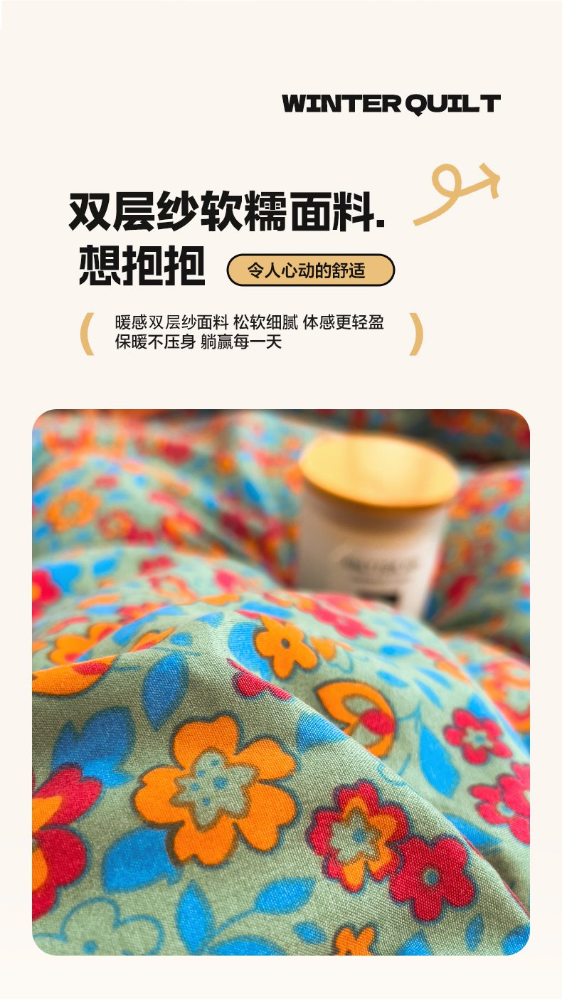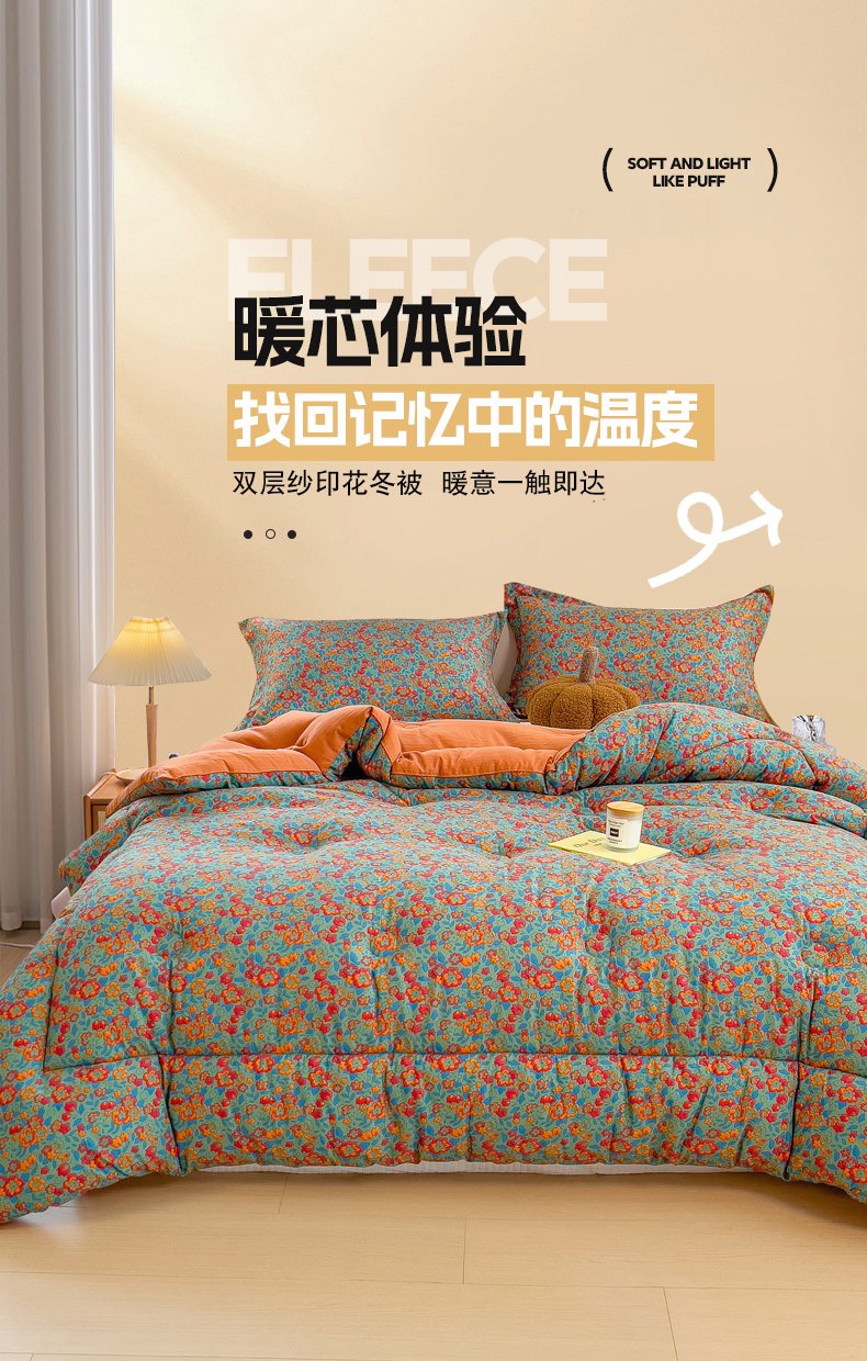 • 91家纺网 家纺一手货源 找家纺 梵克保罗 2025秋冬新品10A抗菌双层纱冬被被子被芯 小雏菊