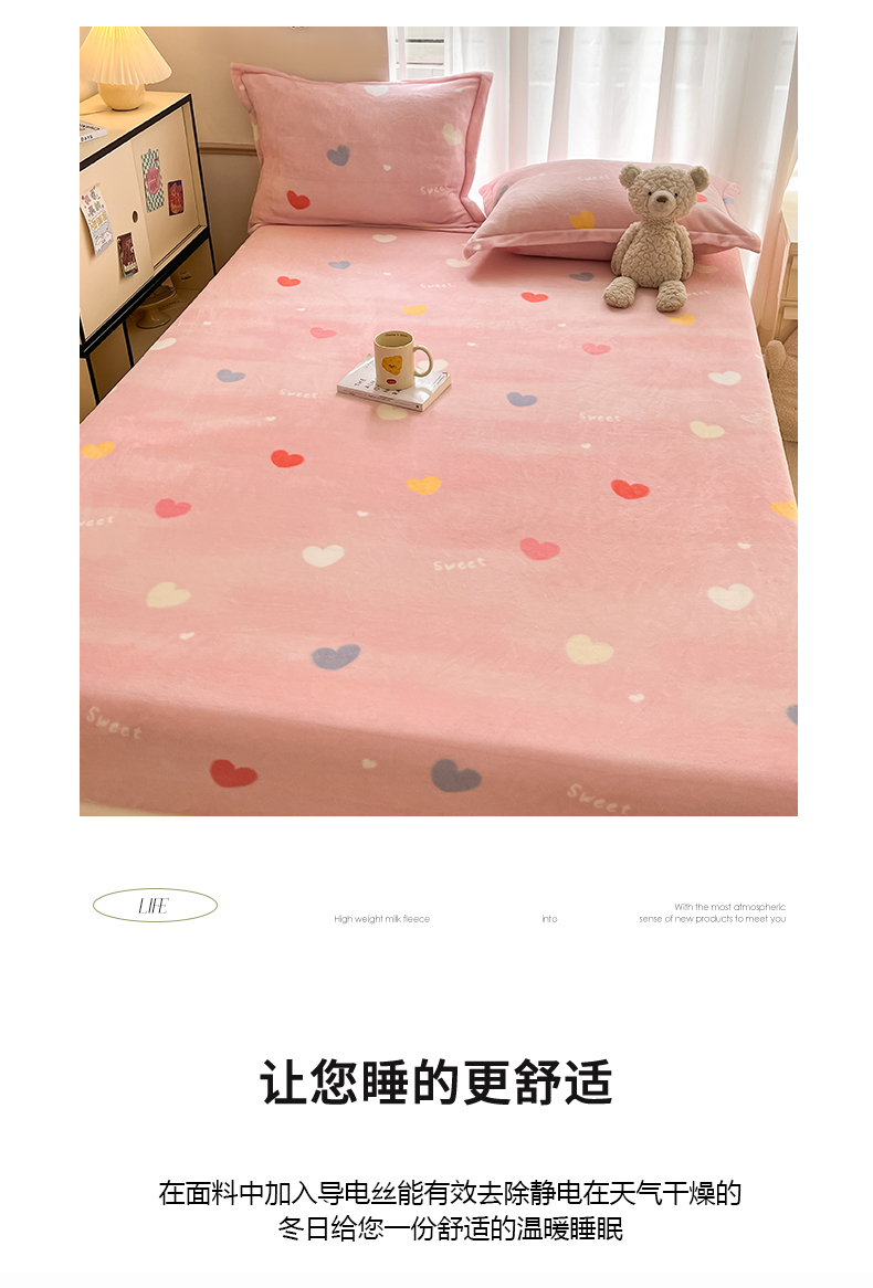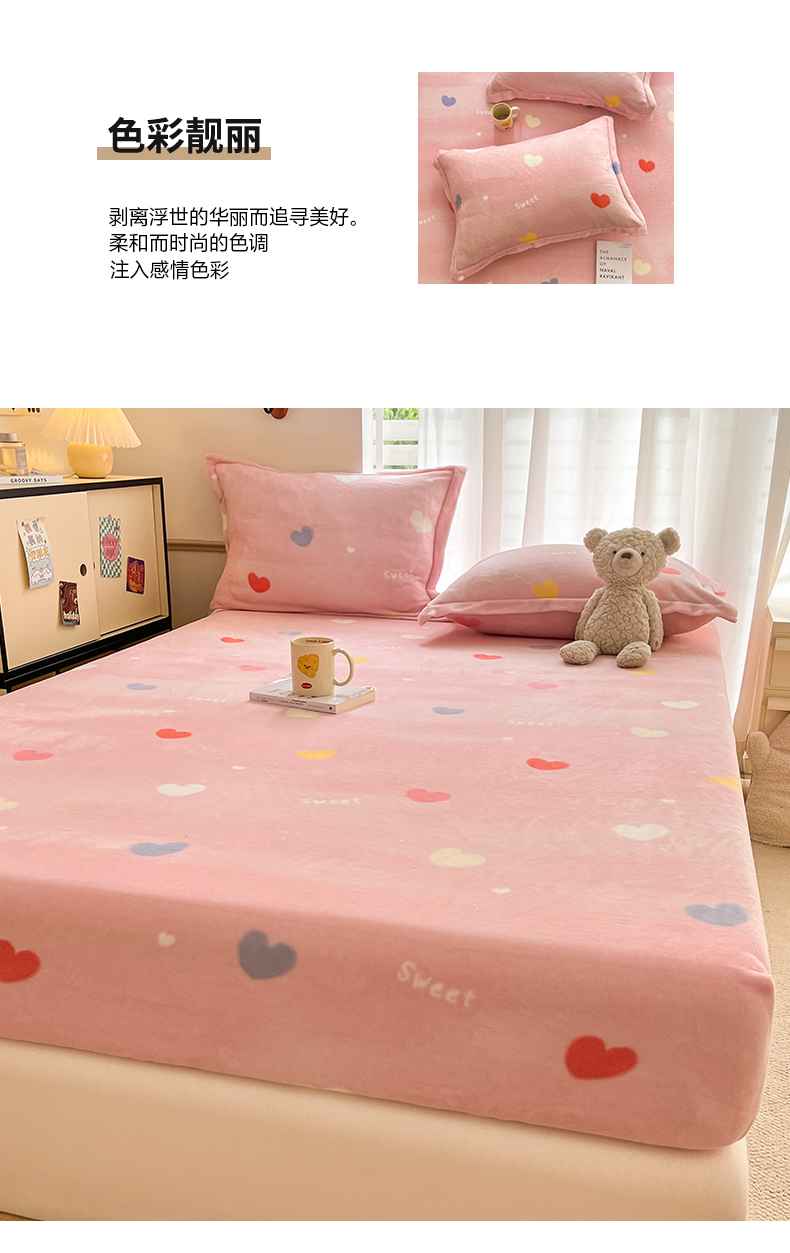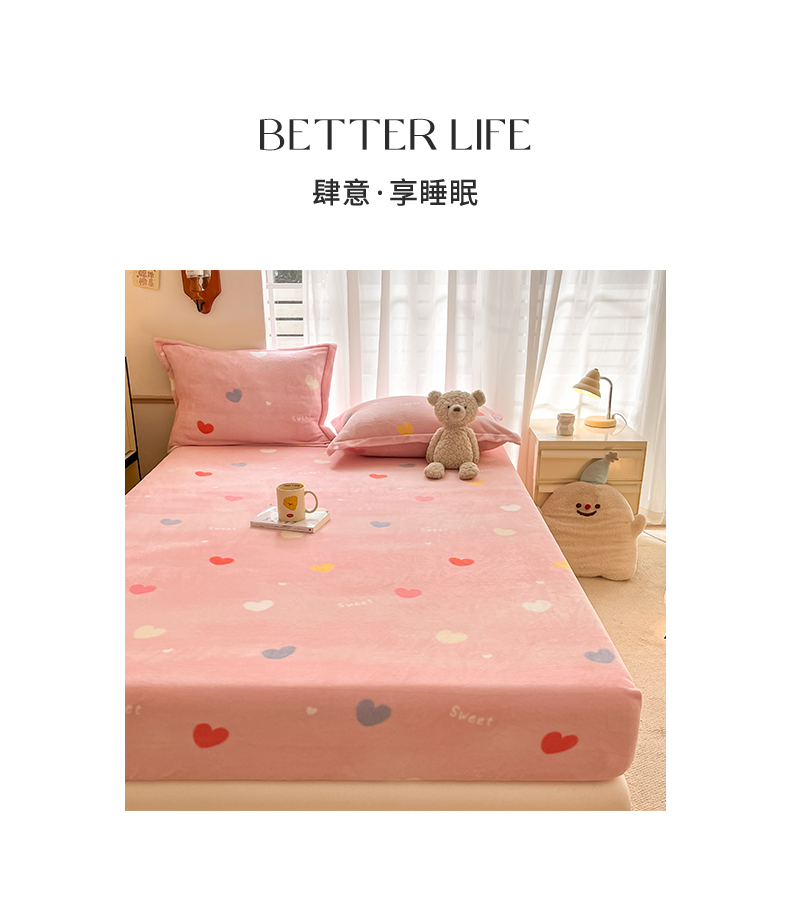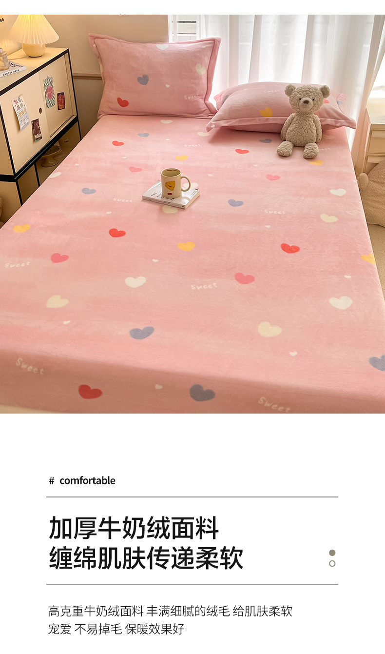 • 91家纺网 家纺一手货源 找家纺 寻米 2025新款高克重加厚保暖牛奶绒床笠-大床图 爱心星语