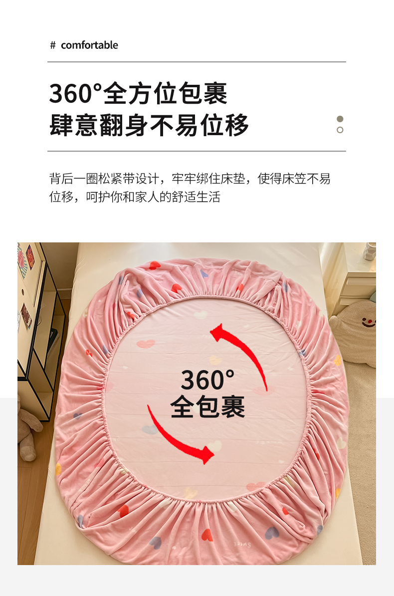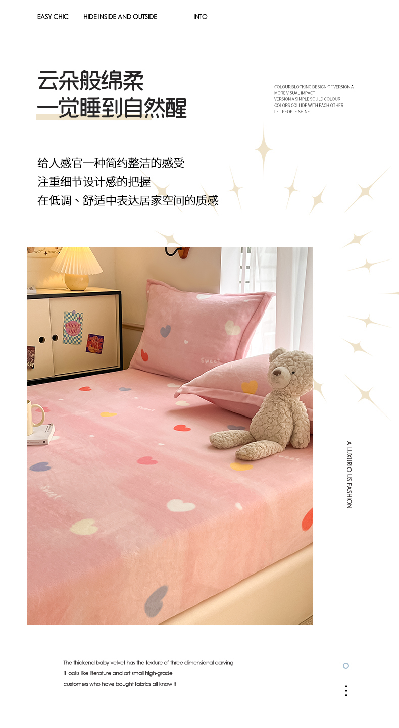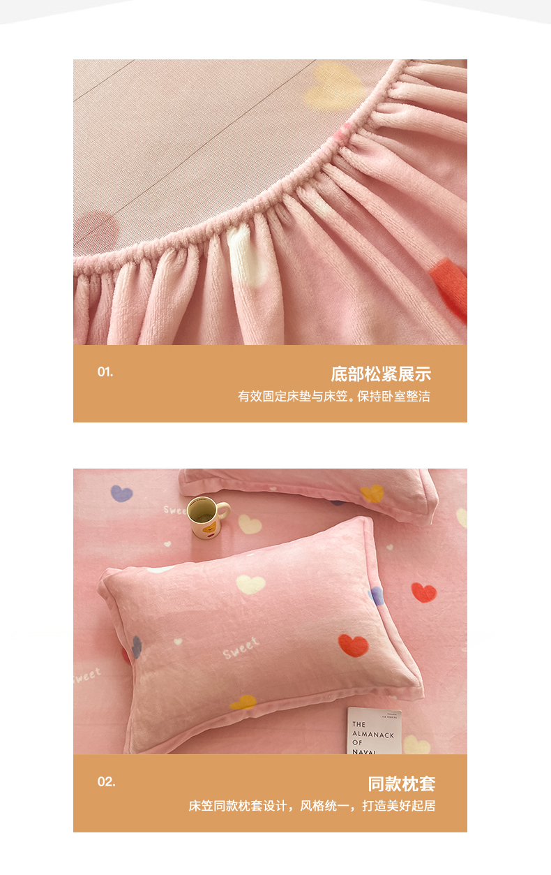• 91家纺网 家纺一手货源 找家纺 寻米 2025新款高克重加厚保暖牛奶绒床笠-大床图 爱心星语