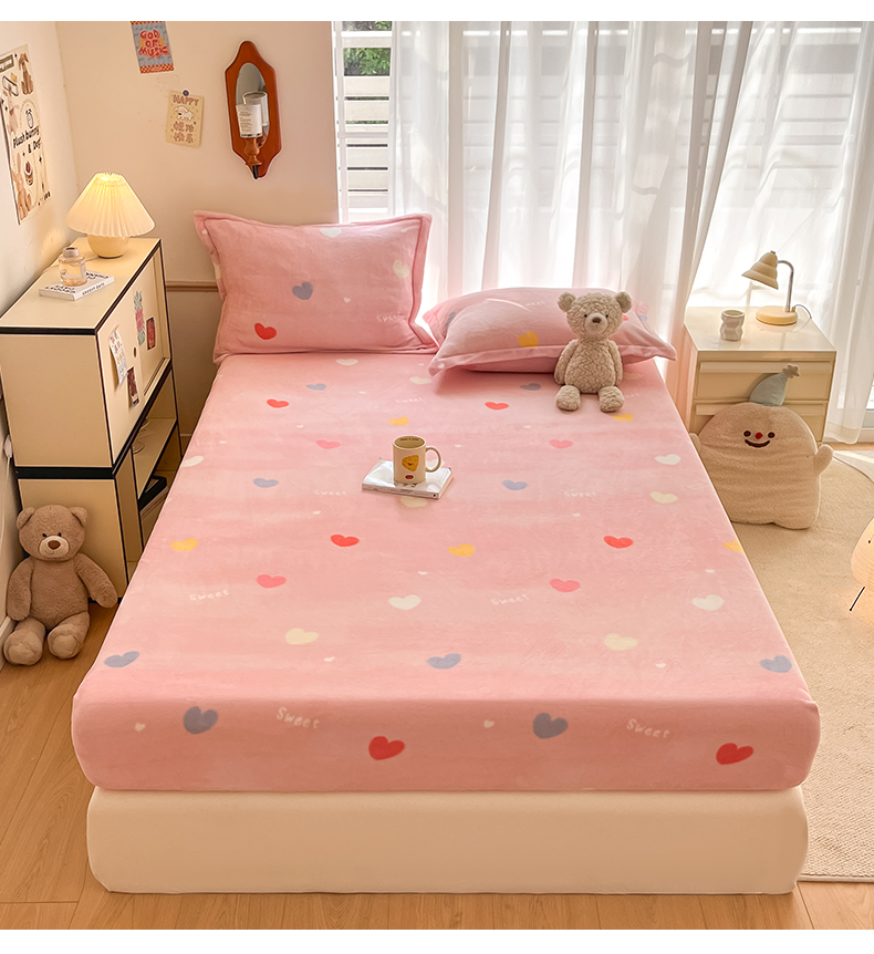 寻米 2025新款高克重加厚保暖牛奶绒床笠-大床图 爱心星语
