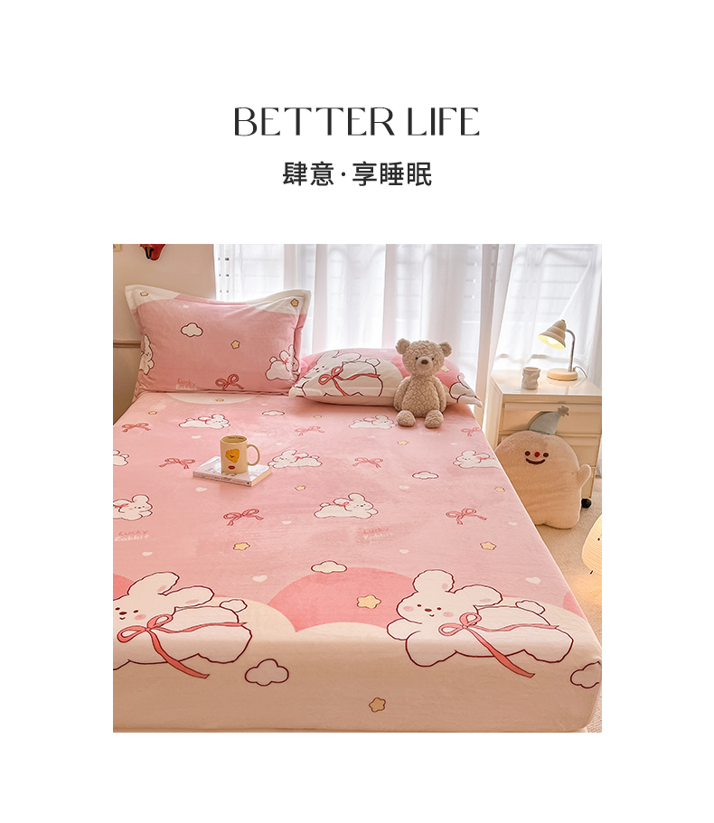 寻米 2025新款高克重加厚保暖牛奶绒床笠-大床图 蜜可小兔