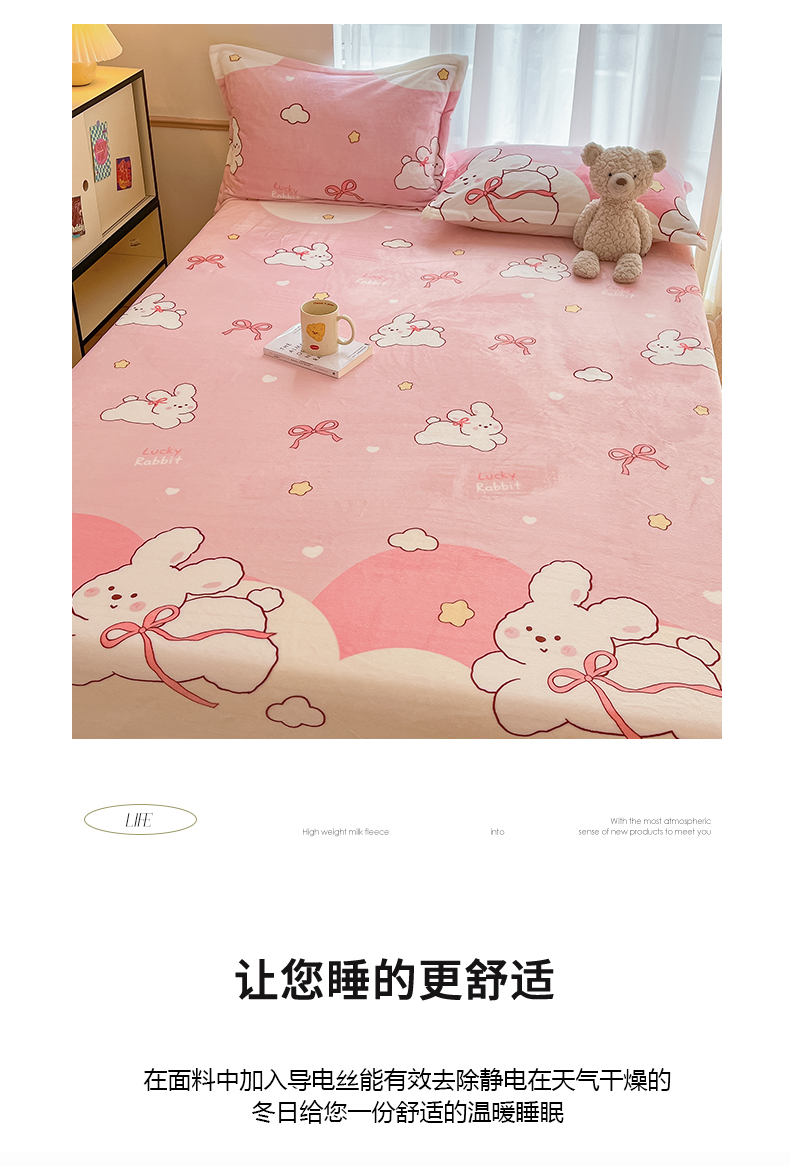 • 91家纺网 家纺一手货源 找家纺 寻米 2025新款高克重加厚保暖牛奶绒床笠-大床图 蜜可小兔