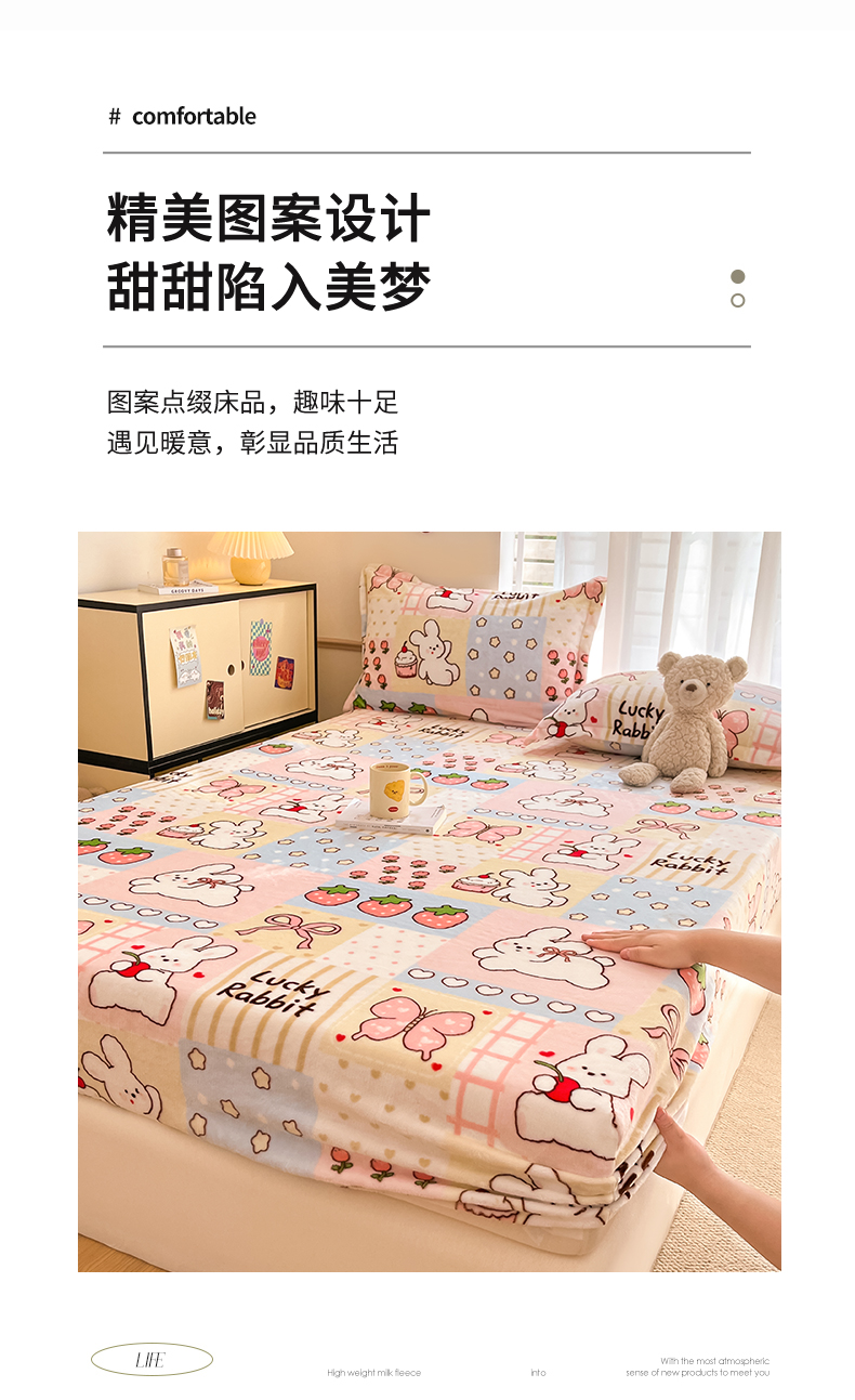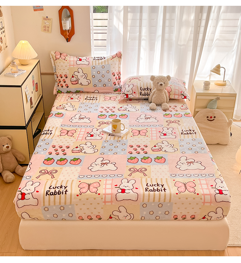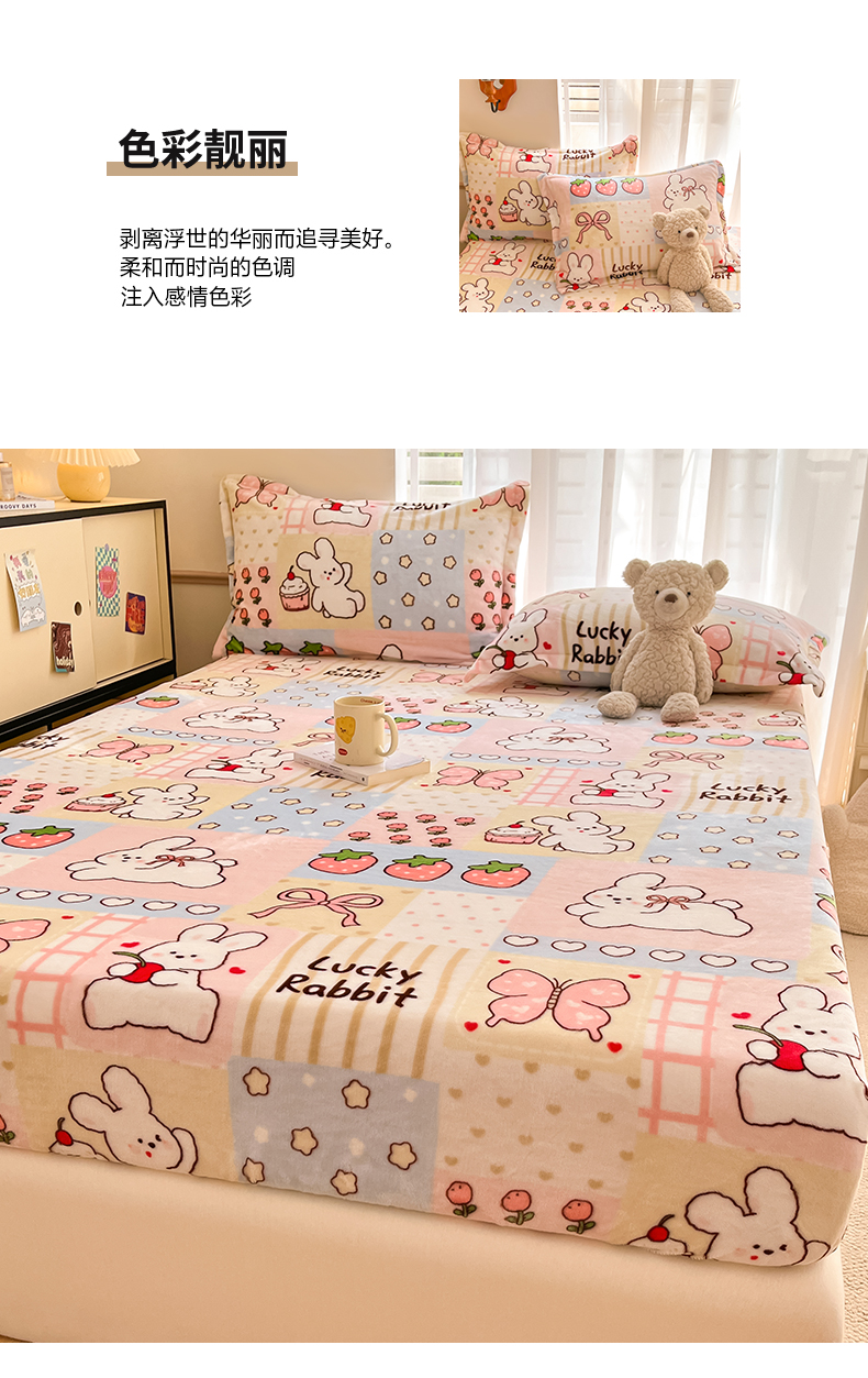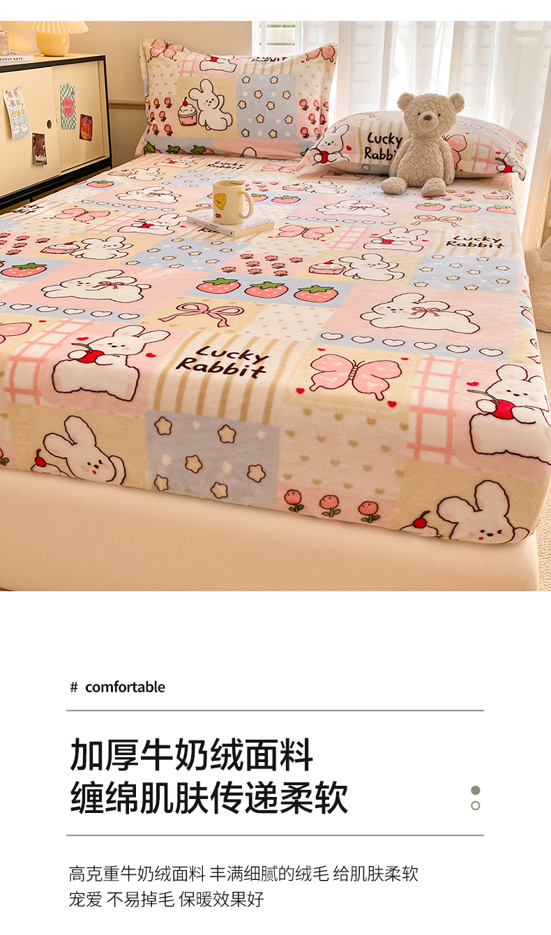 寻米 2025新款高克重加厚保暖牛奶绒床笠-大床图 幸运兔