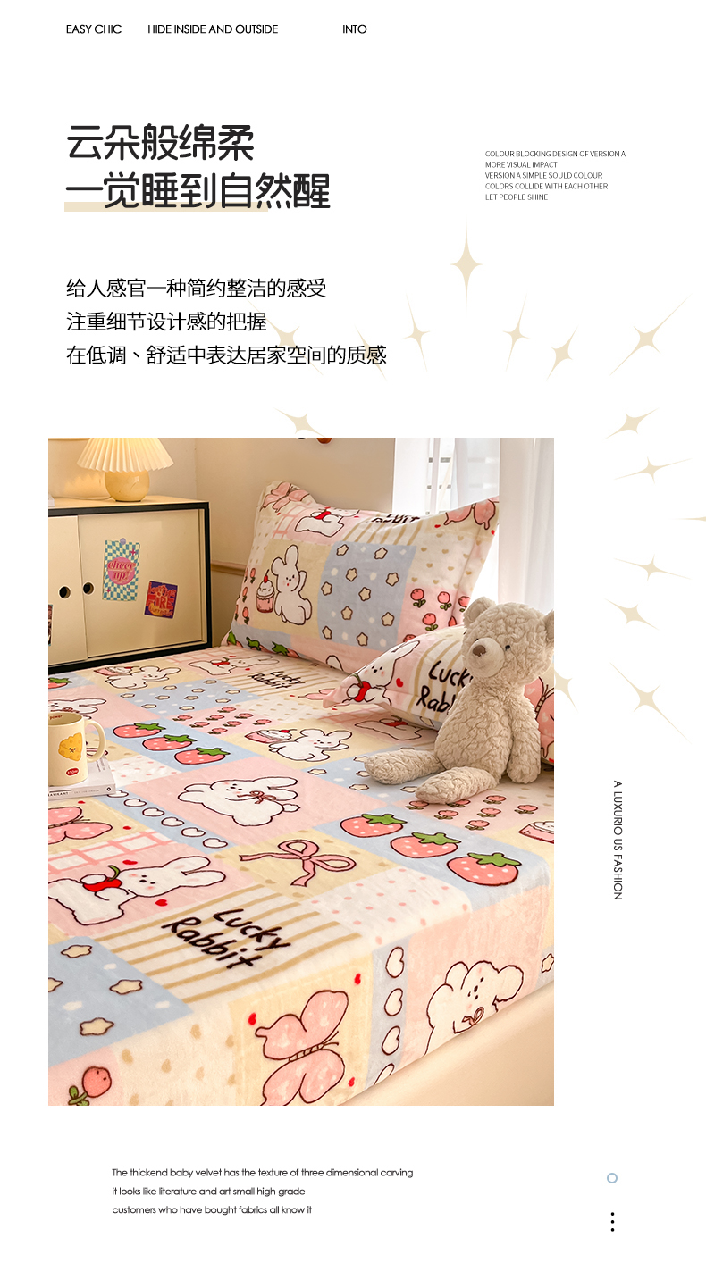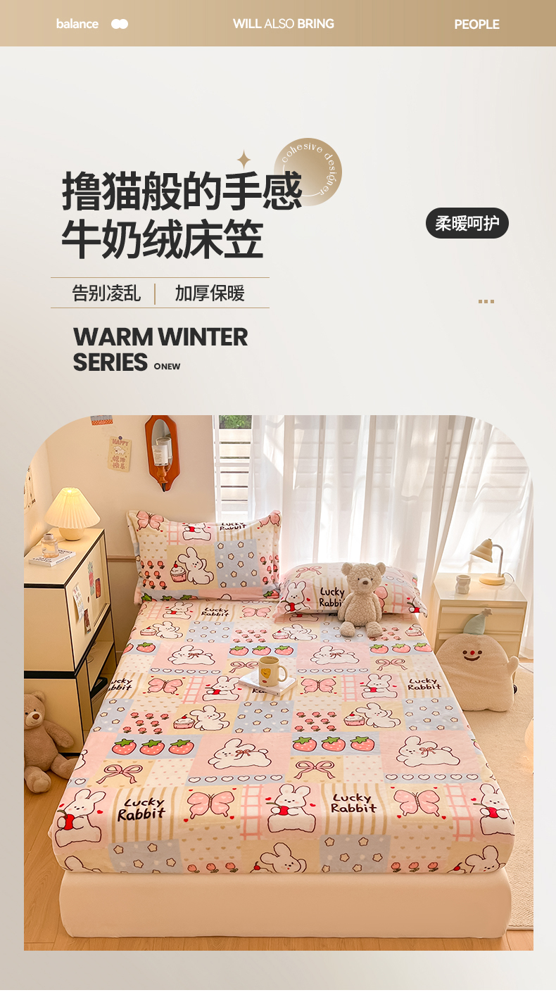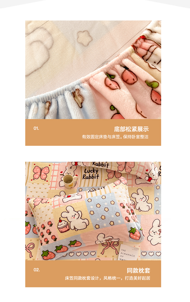 寻米 2025新款高克重加厚保暖牛奶绒床笠-大床图 幸运兔