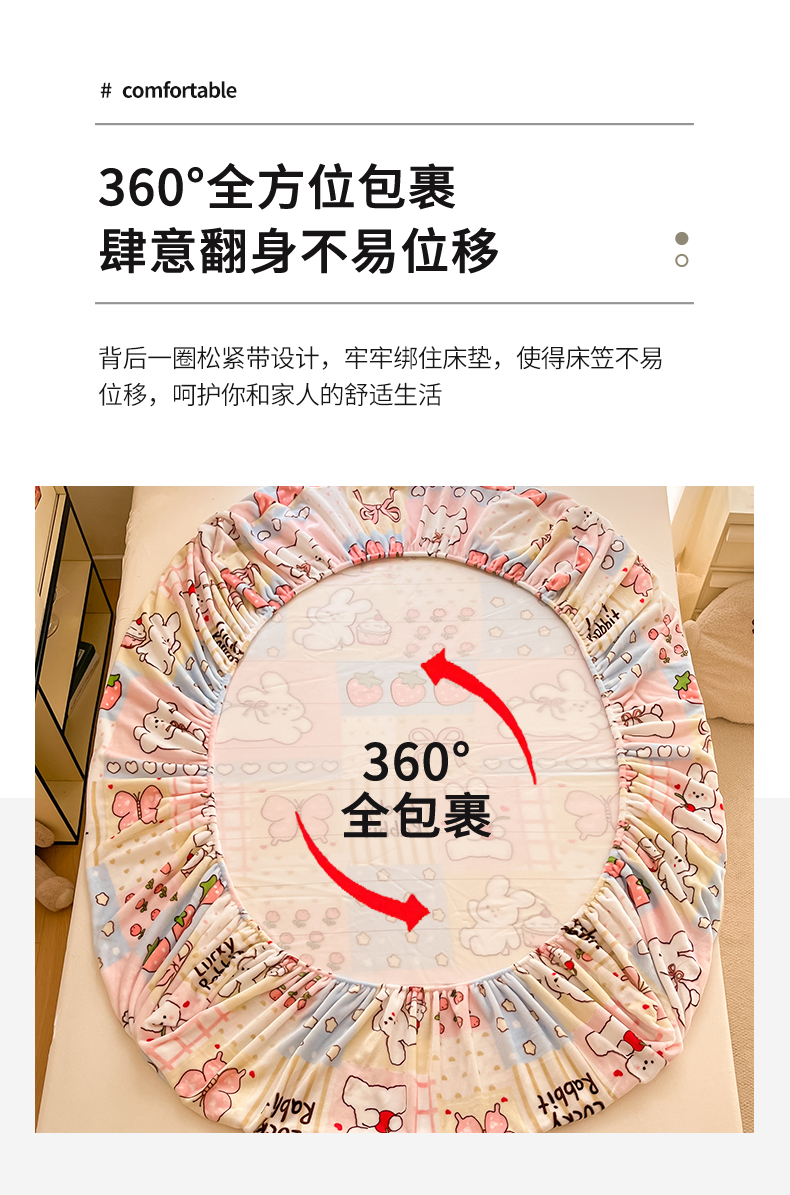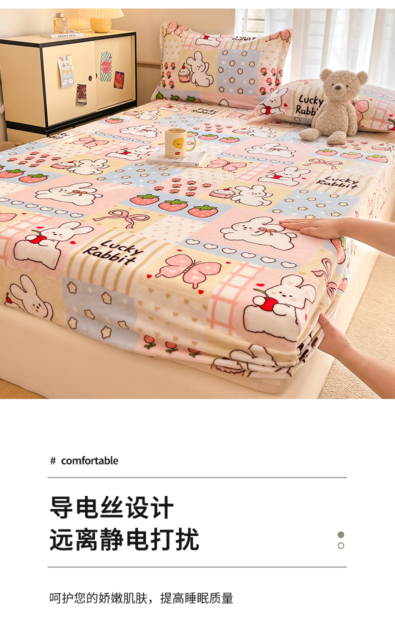 • 91家纺网 家纺一手货源 找家纺 寻米 2025新款高克重加厚保暖牛奶绒床笠-大床图 幸运兔