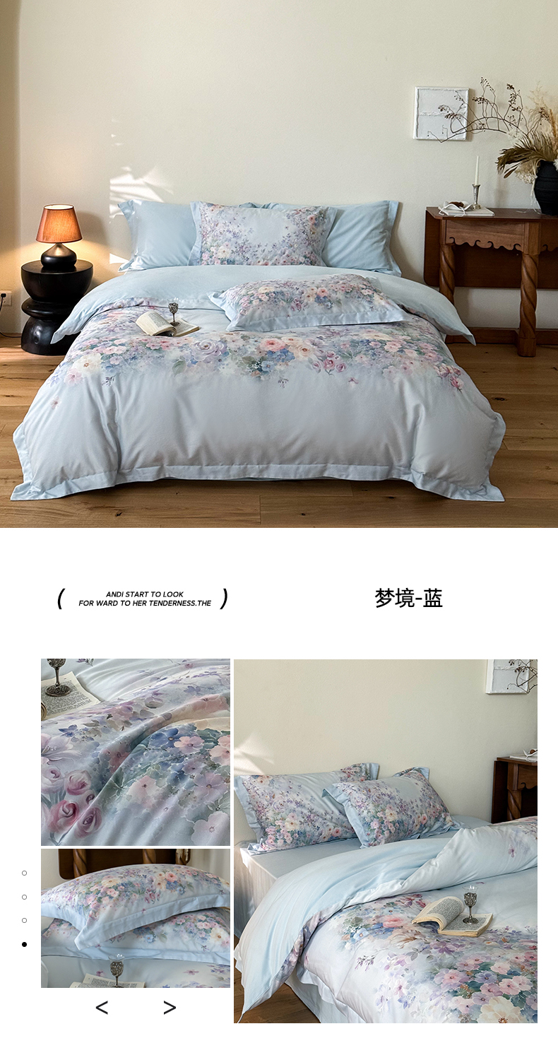 商品名称:禾时 2025新款天丝棉磨毛数码印花四件套 梦境-蓝