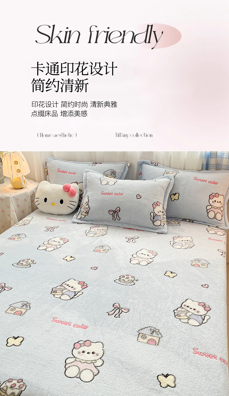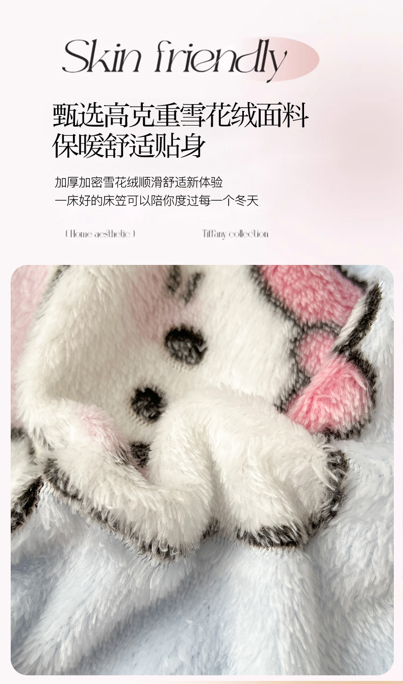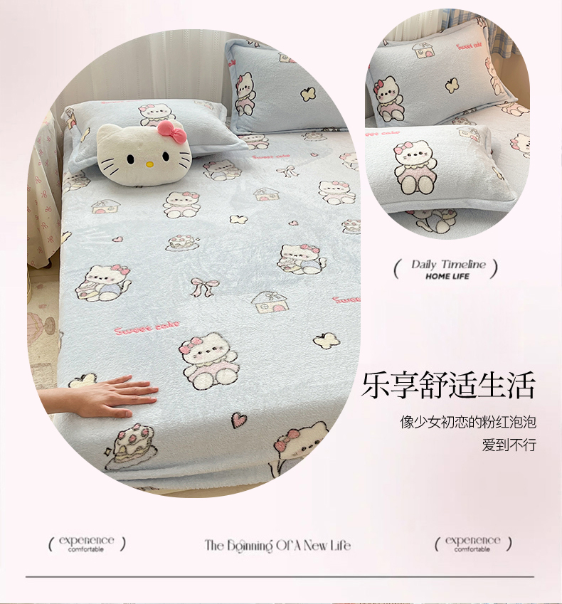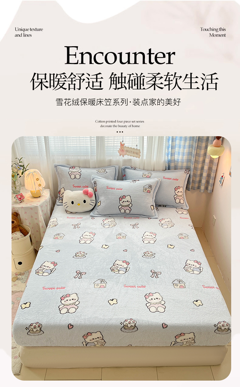 • 91家纺网 家纺一手货源 找家纺 川悦生活 2025新款高克重雪花绒卡通印花加厚保暖大床单床笠 床笠幸运小咪