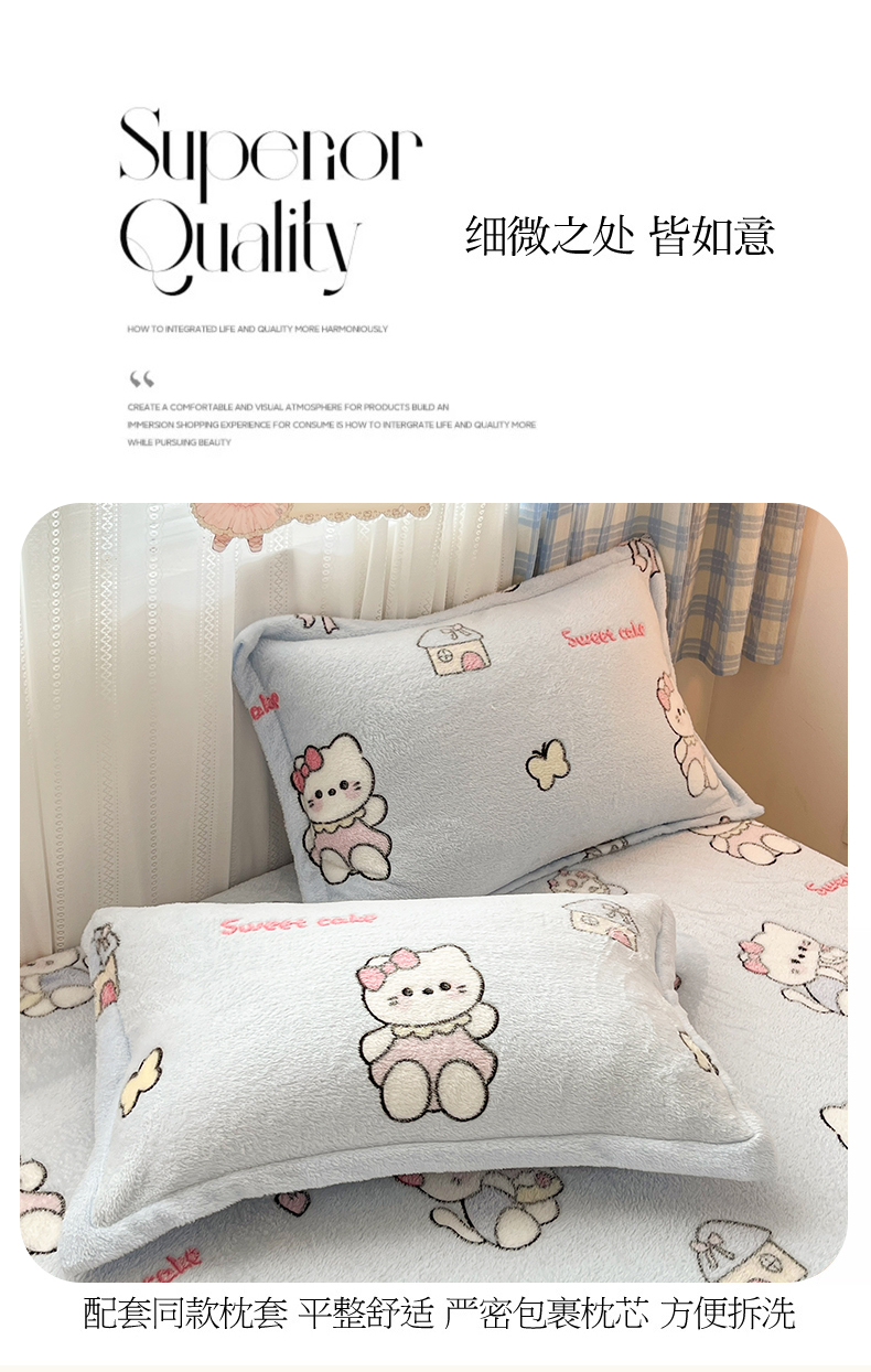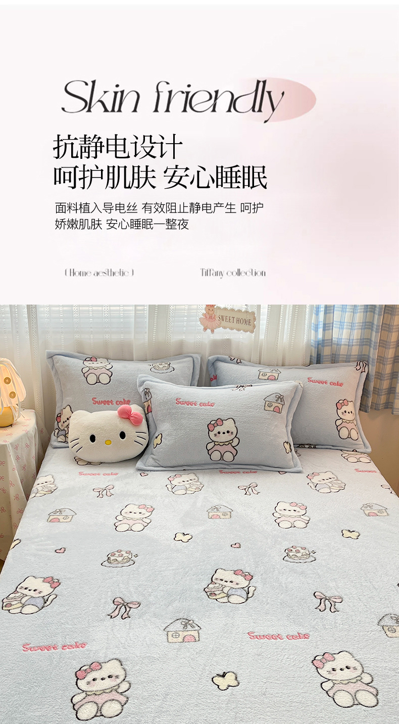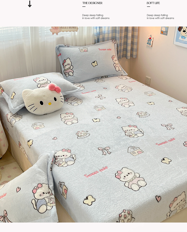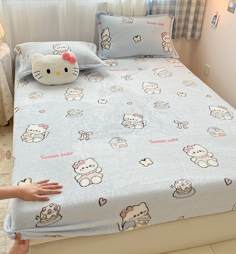 • 91家纺网 家纺一手货源 找家纺 川悦生活 2025新款高克重雪花绒卡通印花加厚保暖大床单床笠 床笠幸运小咪