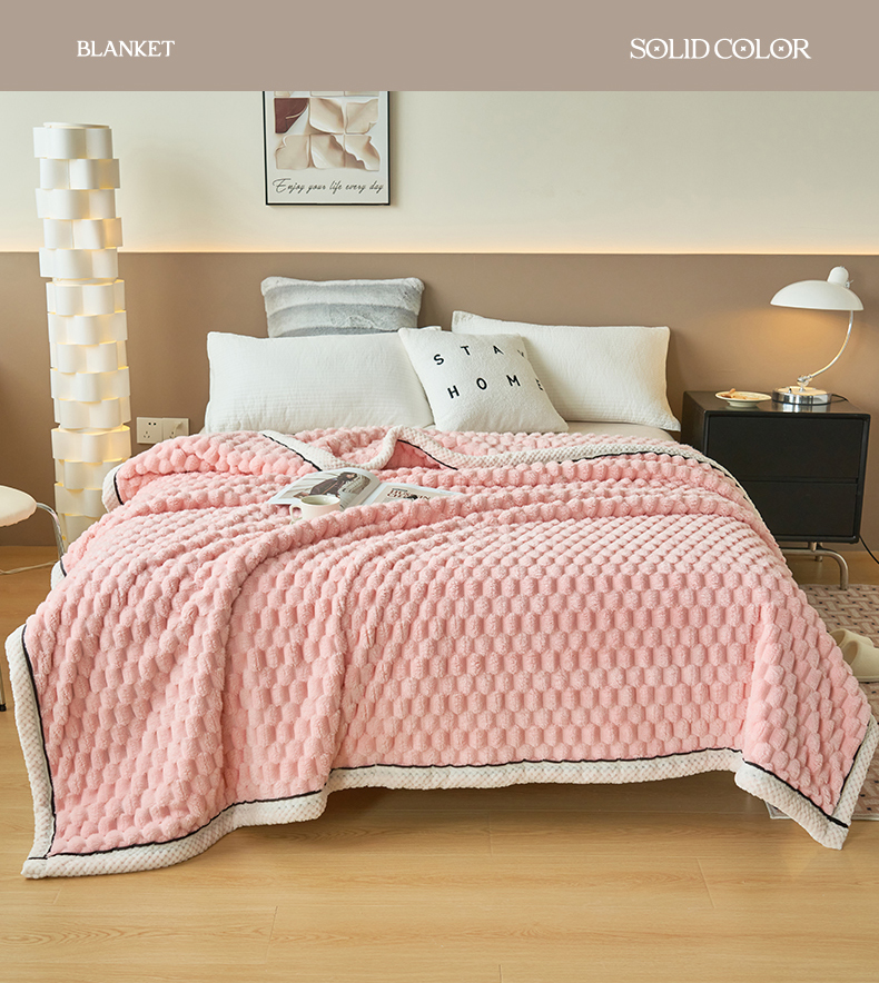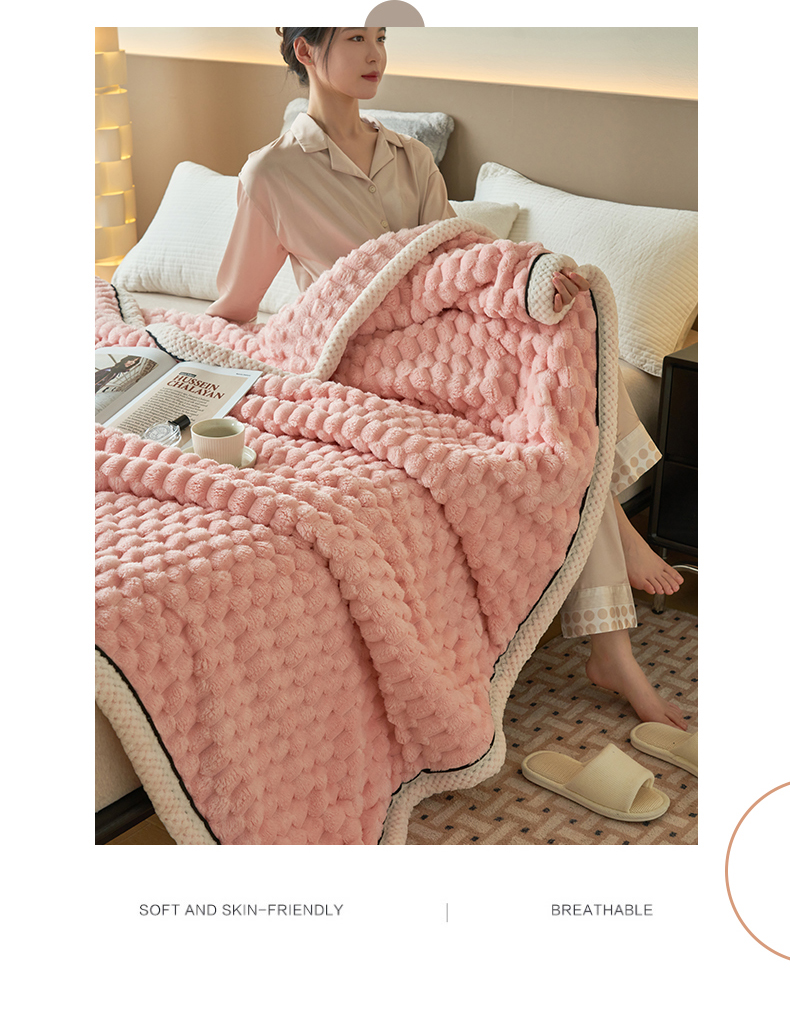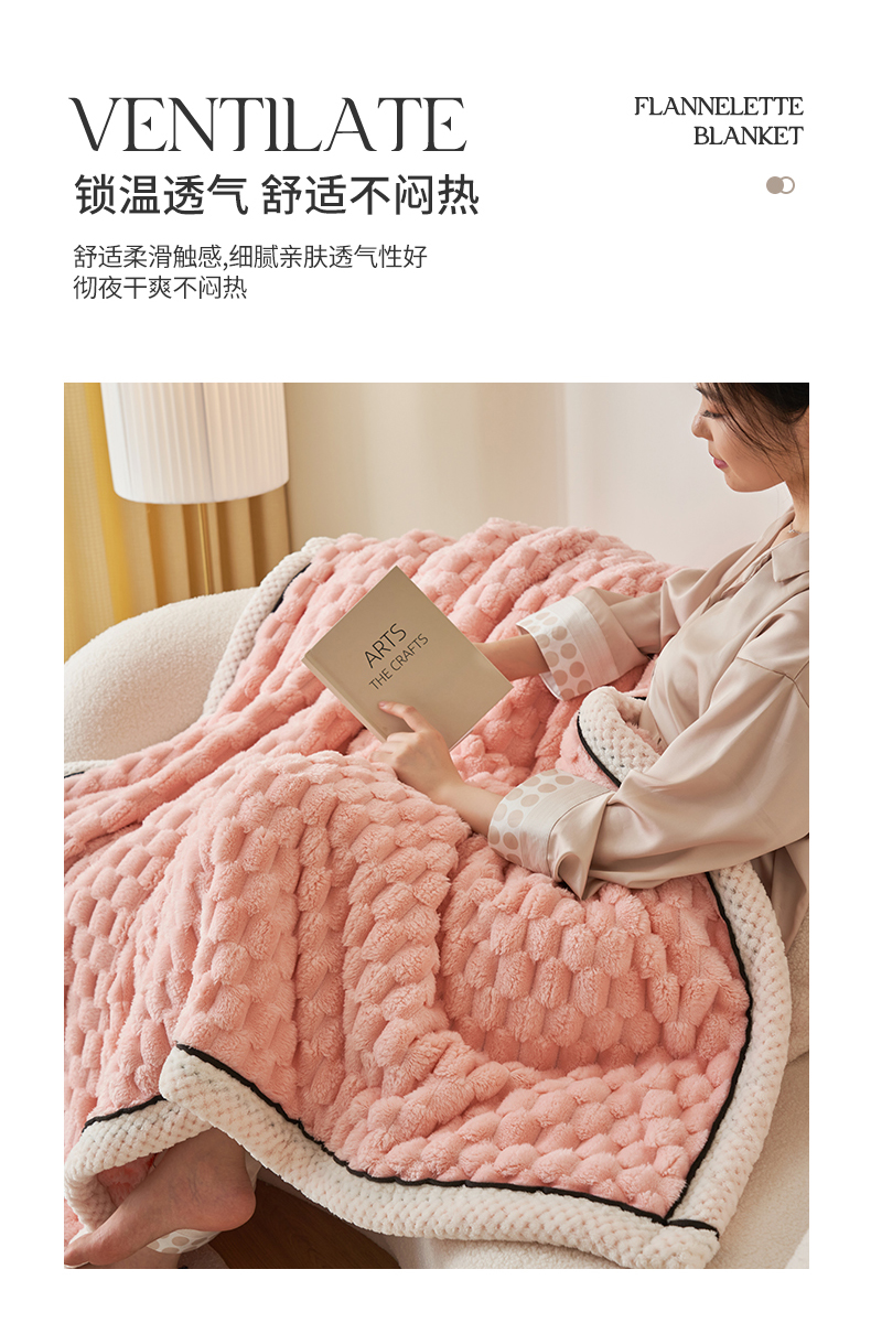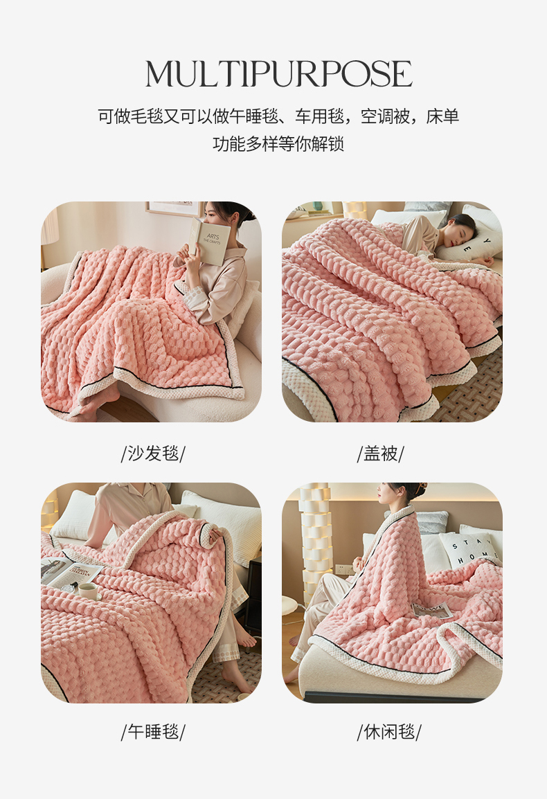 莱家富 2026新款跨境外贸金龟绒多功能毛毯高克重法莱绒牛奶绒保暖毛毯(支持抽空压缩,卷包) 嫩粉