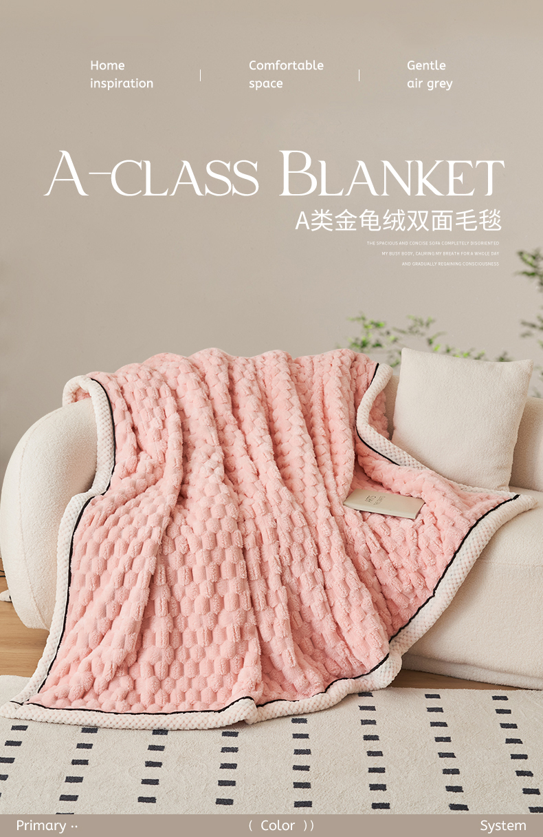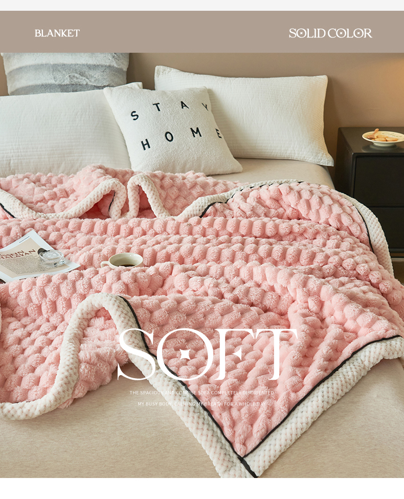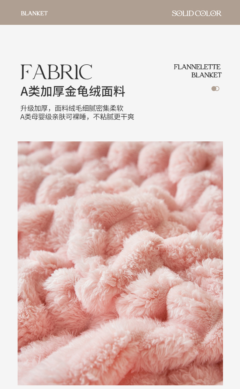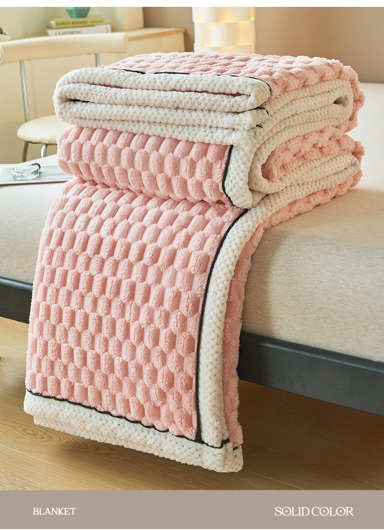 莱家富 2026新款跨境外贸金龟绒多功能毛毯高克重法莱绒牛奶绒保暖毛毯(支持抽空压缩,卷包) 嫩粉