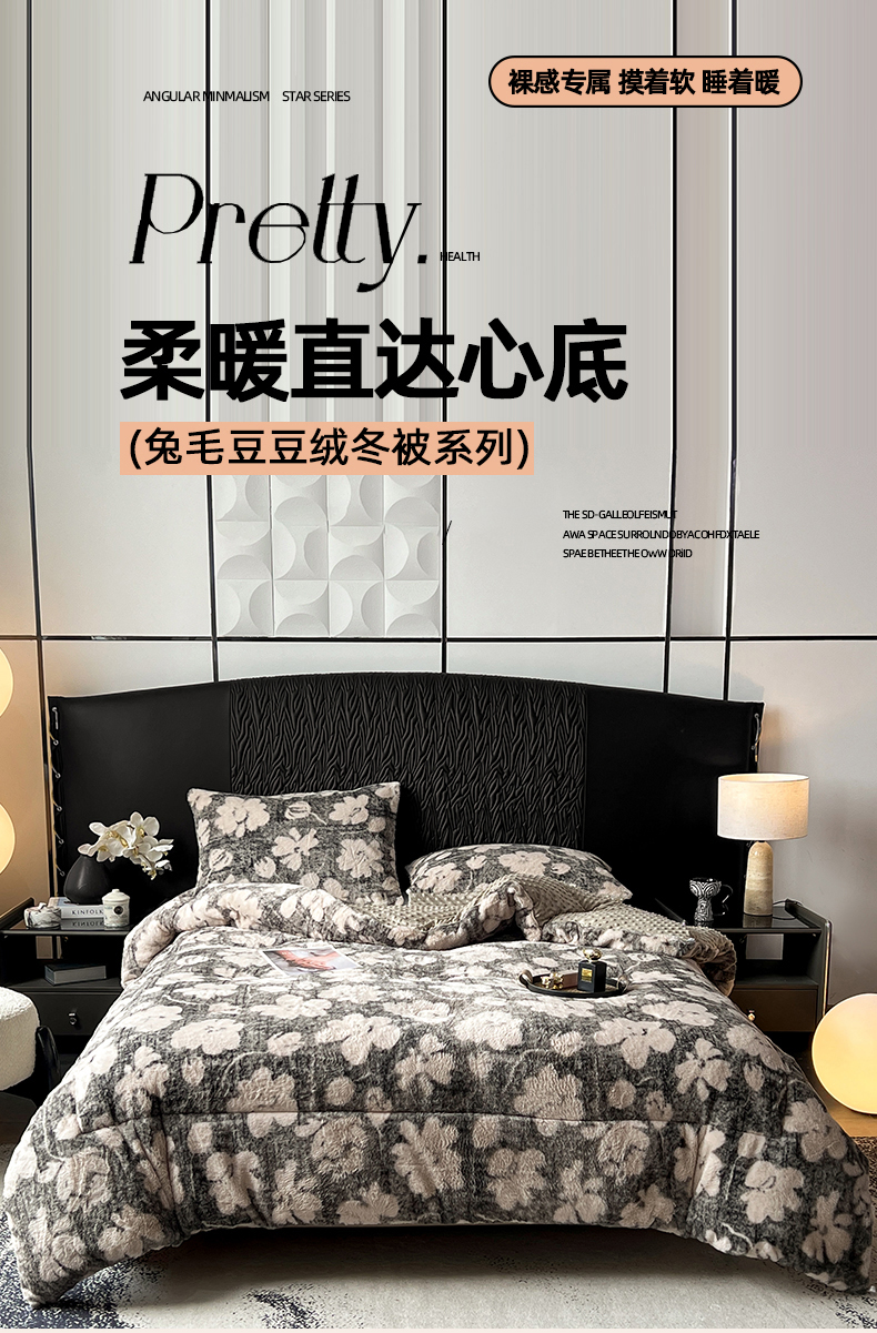商品名称:米乐被业 2025新款兔毛印花豆豆被被子被芯 花漾